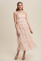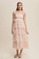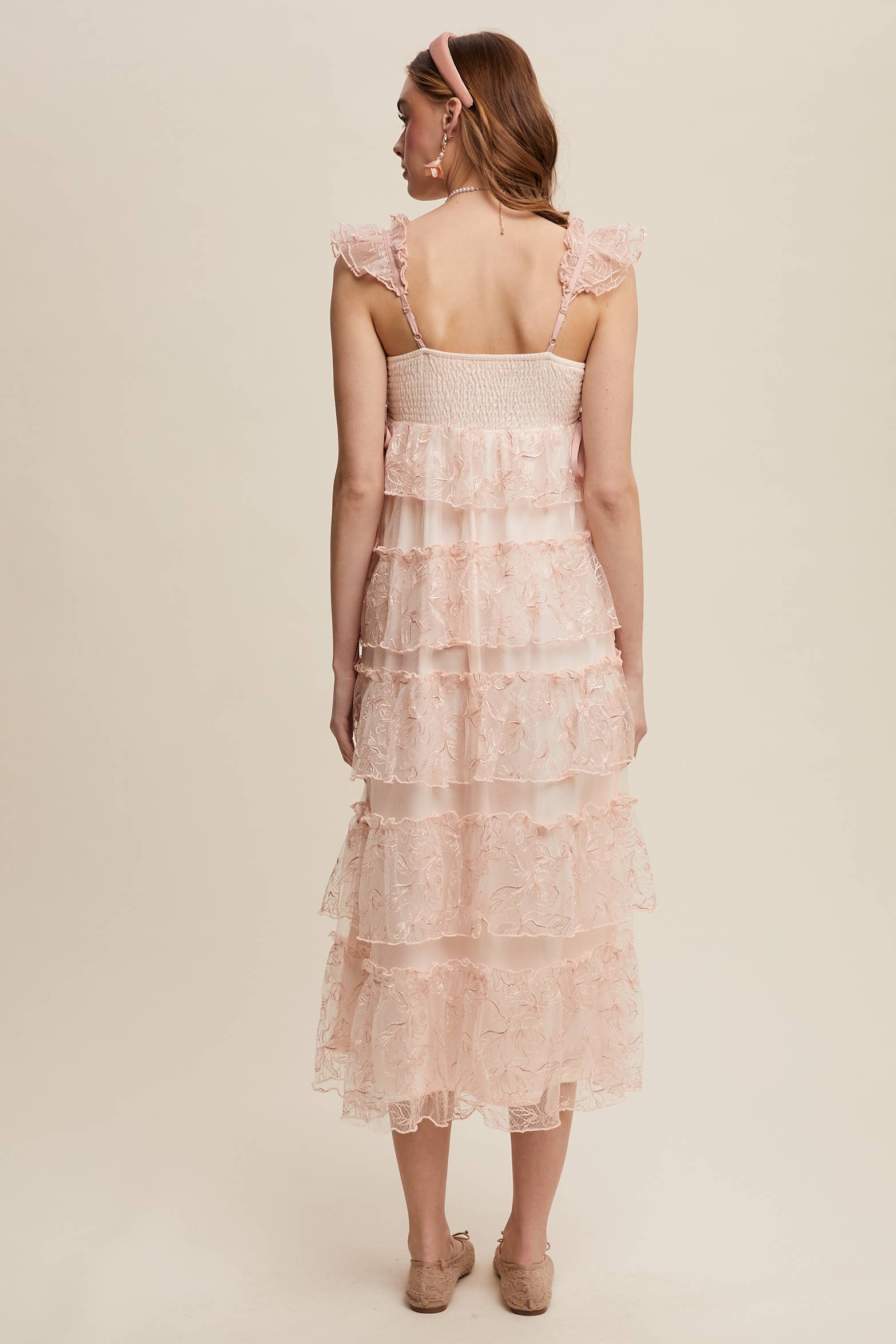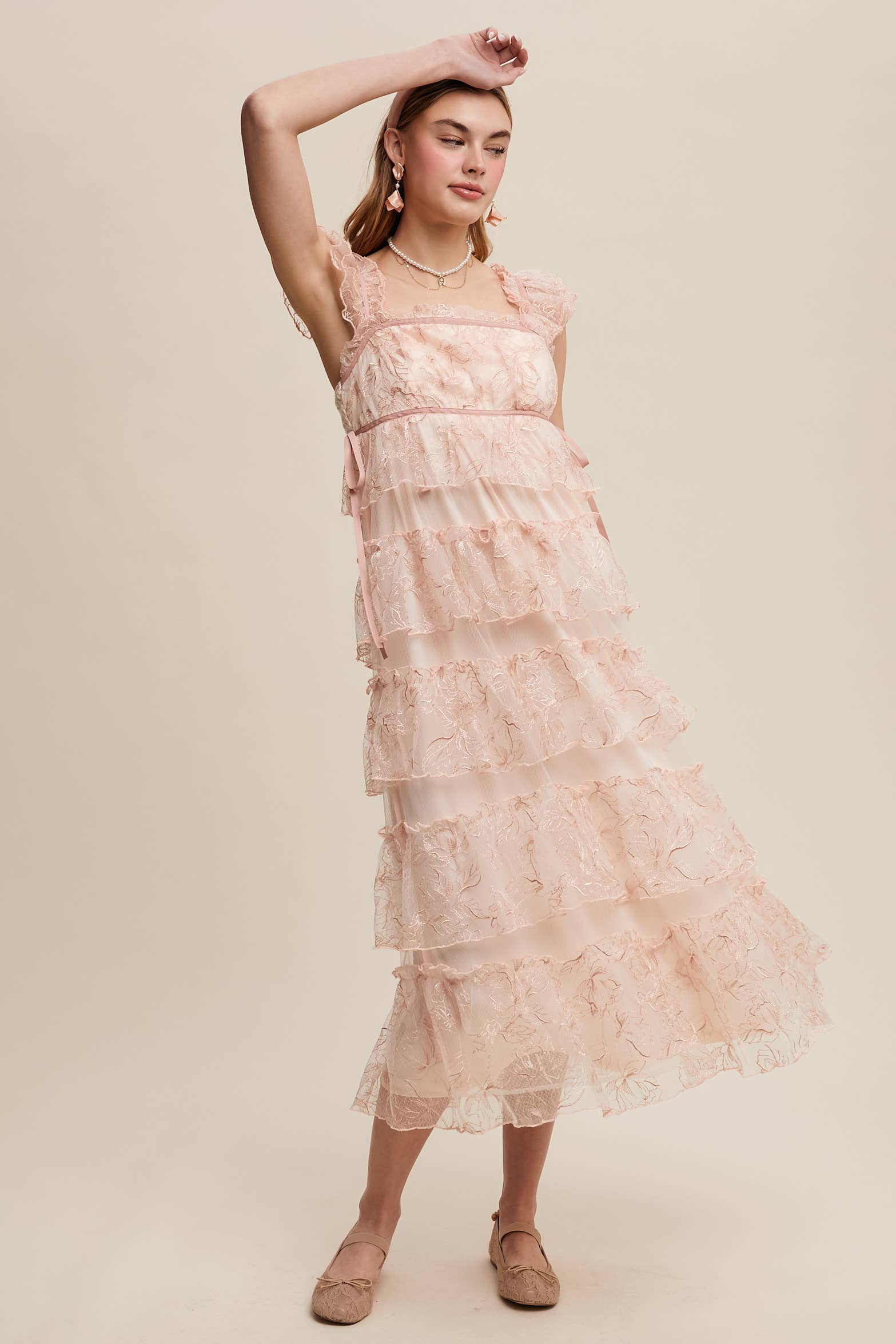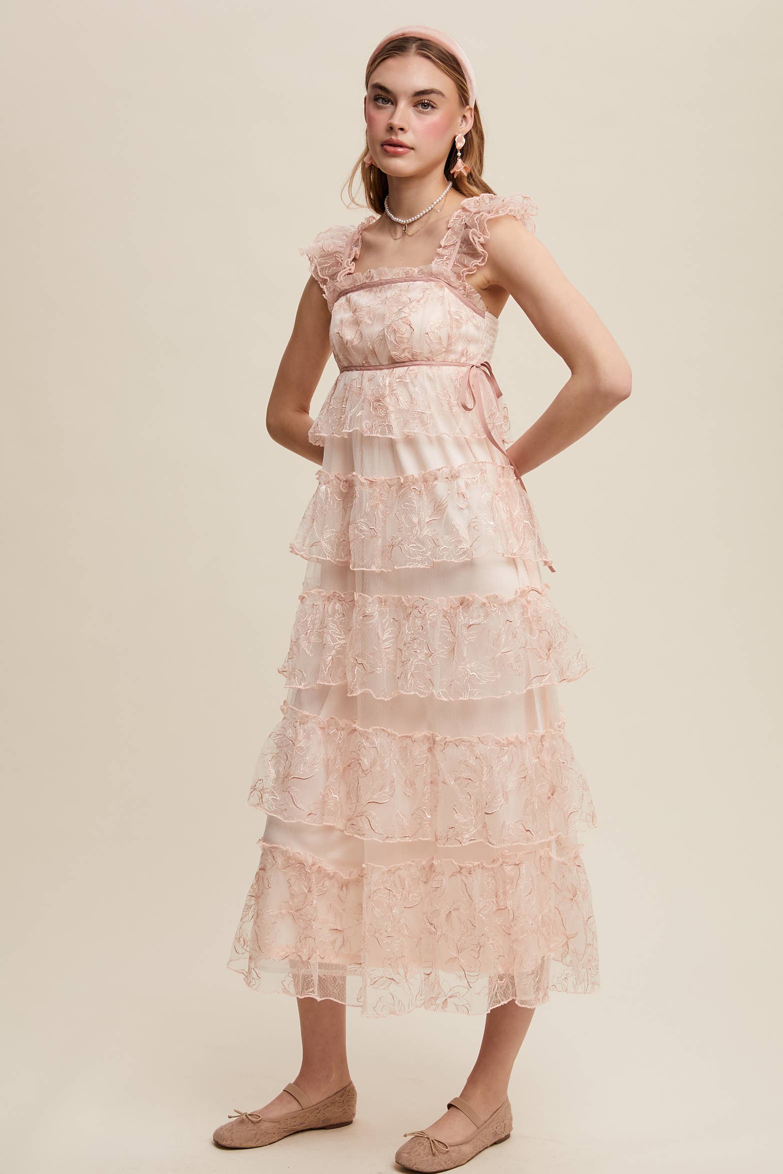 Delicate Floral Embroidered Lace Maxi Dress: Mute Pink