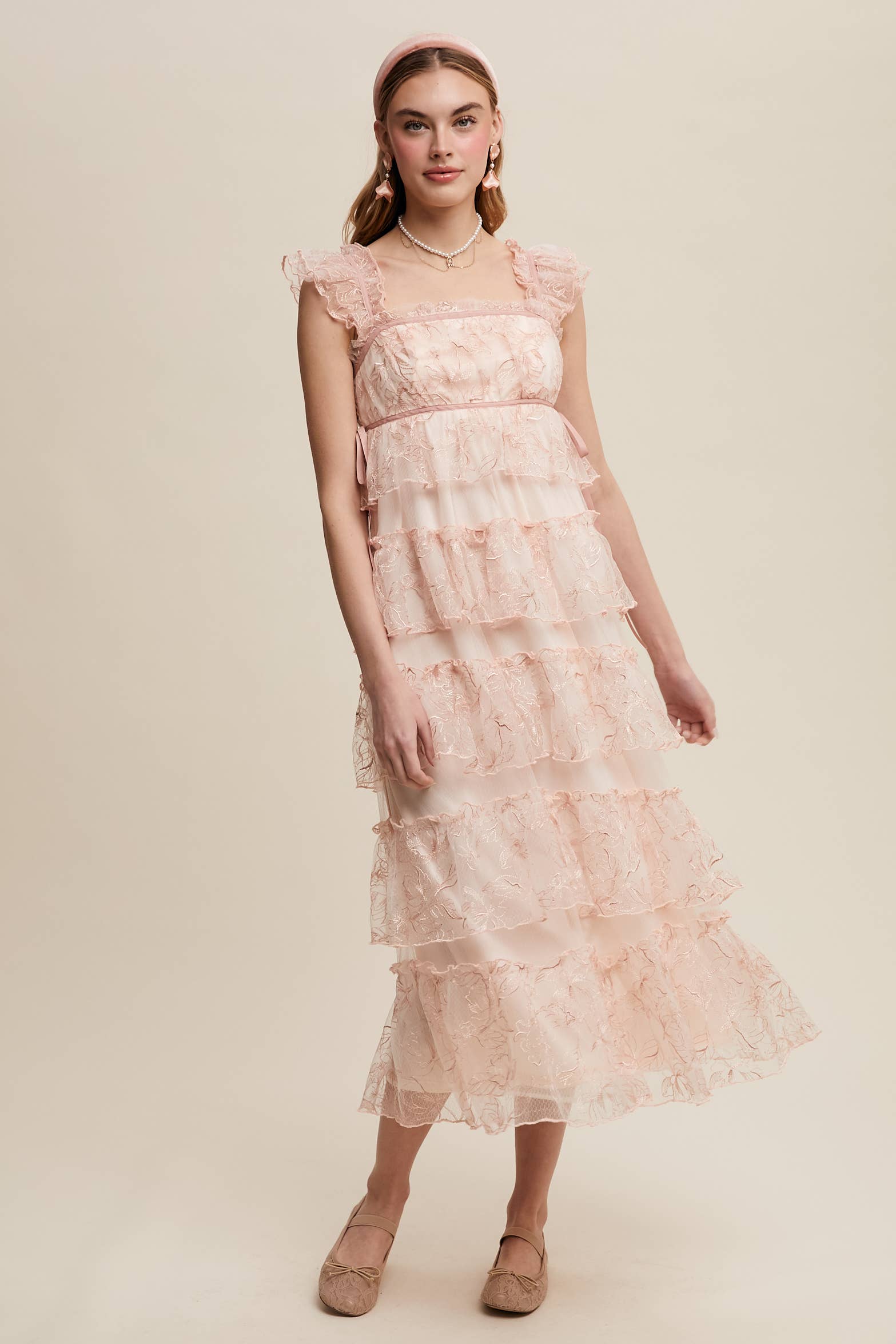- Tiered Silhouette: Features cascading tiered layers for a graceful and flowing silhouette.