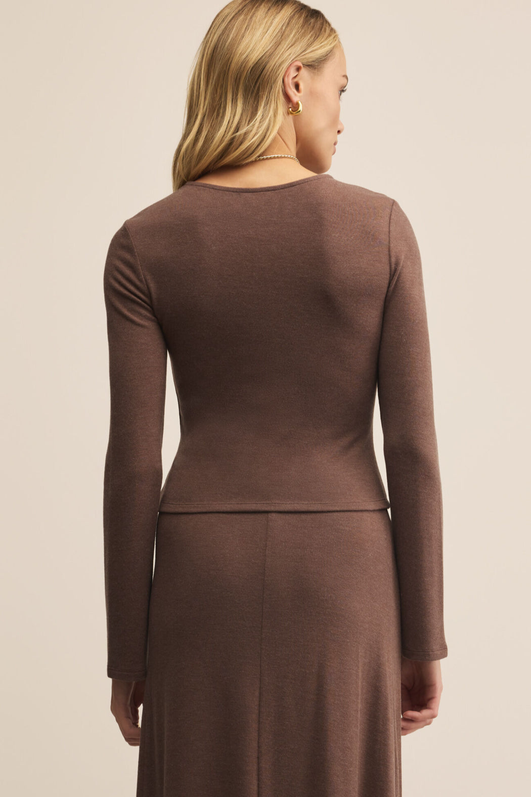 Soft, stretchy, and fitted just right, this long sleeve brings easy shape with a fluted sleeve and flattering cropped length. Whether layered up or worn on its own, it’s made for feeling cozy while looking pulled together.