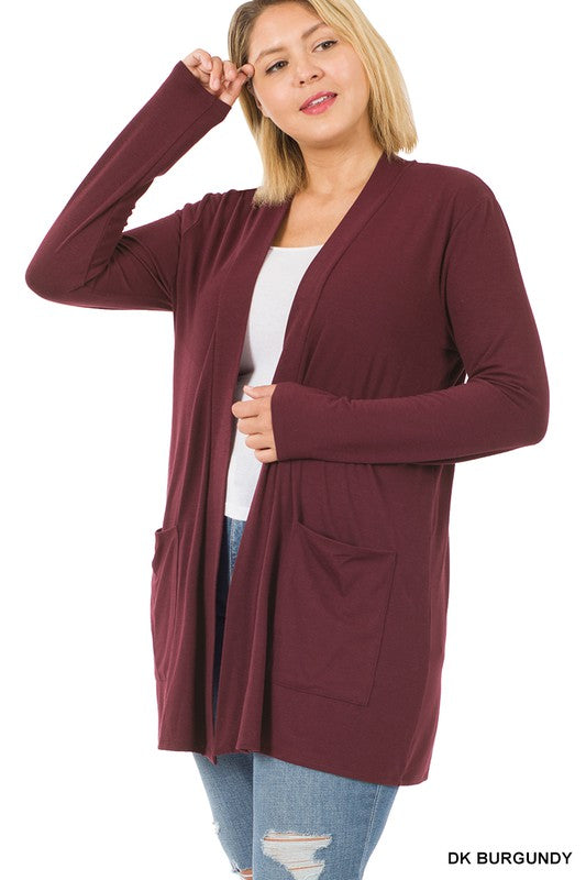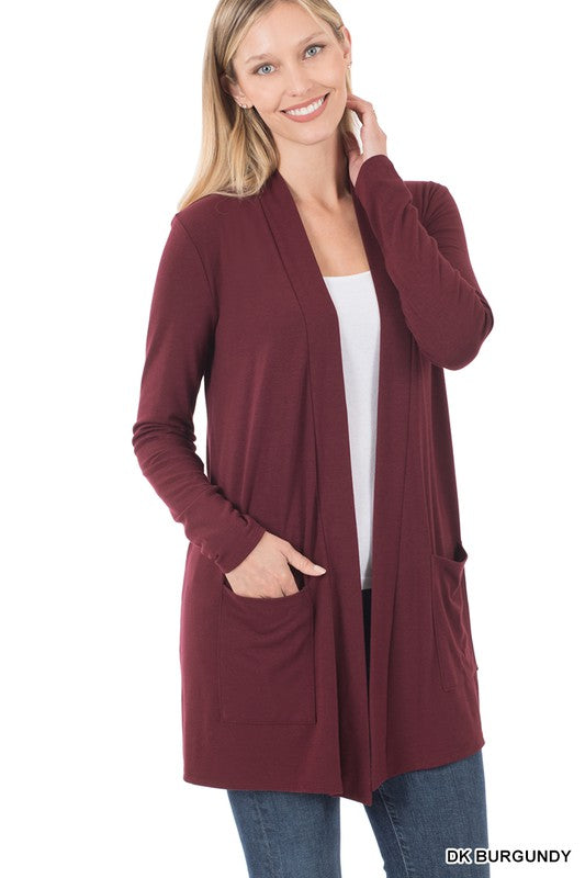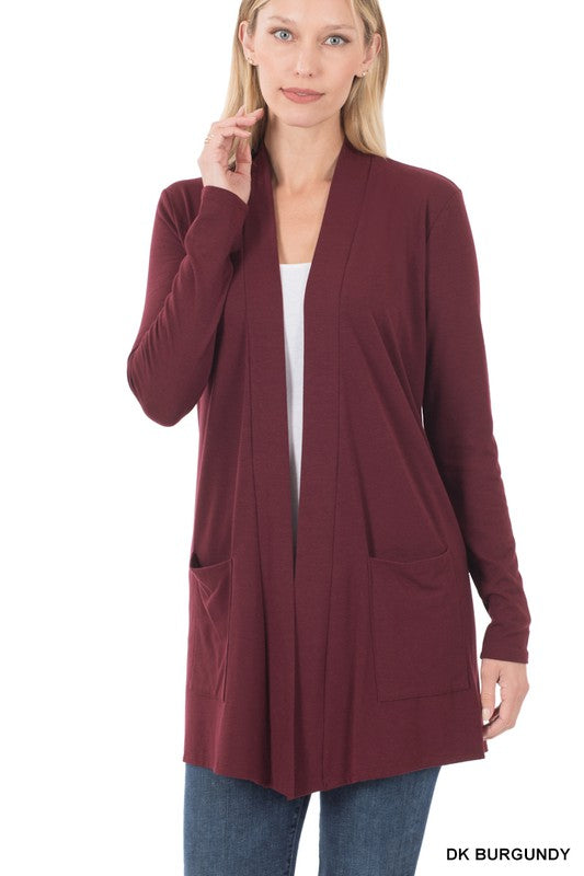 Burgundy SLOUCHY POCKET OPEN CARDIGAN