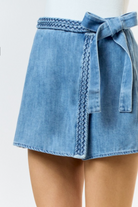 BRAIDED DENIM WAIST TIE WRAPPED SHORTS