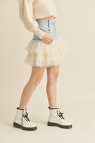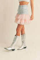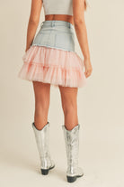 Denim Mini Skirt with Tulle