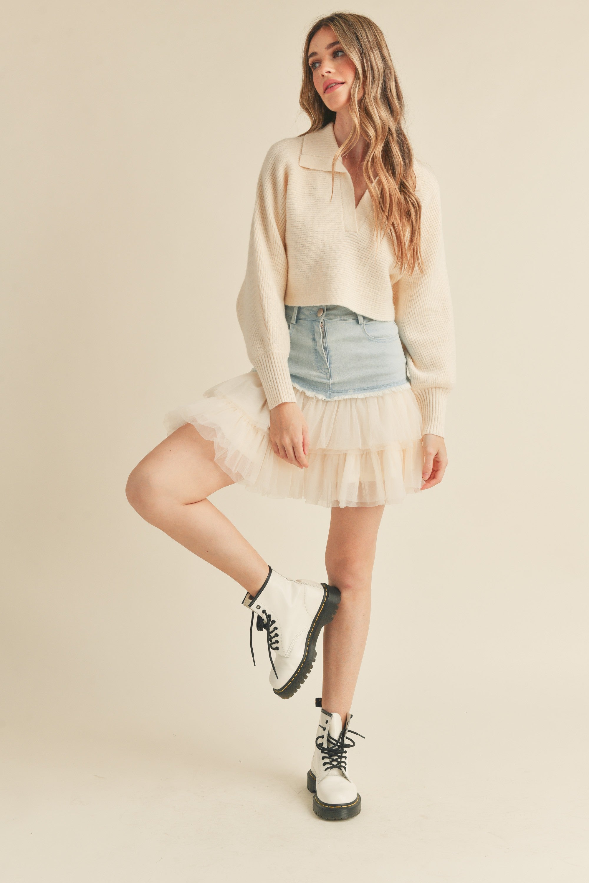 This Denim Mini Skirt with Tulle is ready to make a statement! With a lightweight denim and a chic, tiered tulle layer detail, you can twirl the night away without a single worry. It's the perfect way to give your look an extra pop of sass!