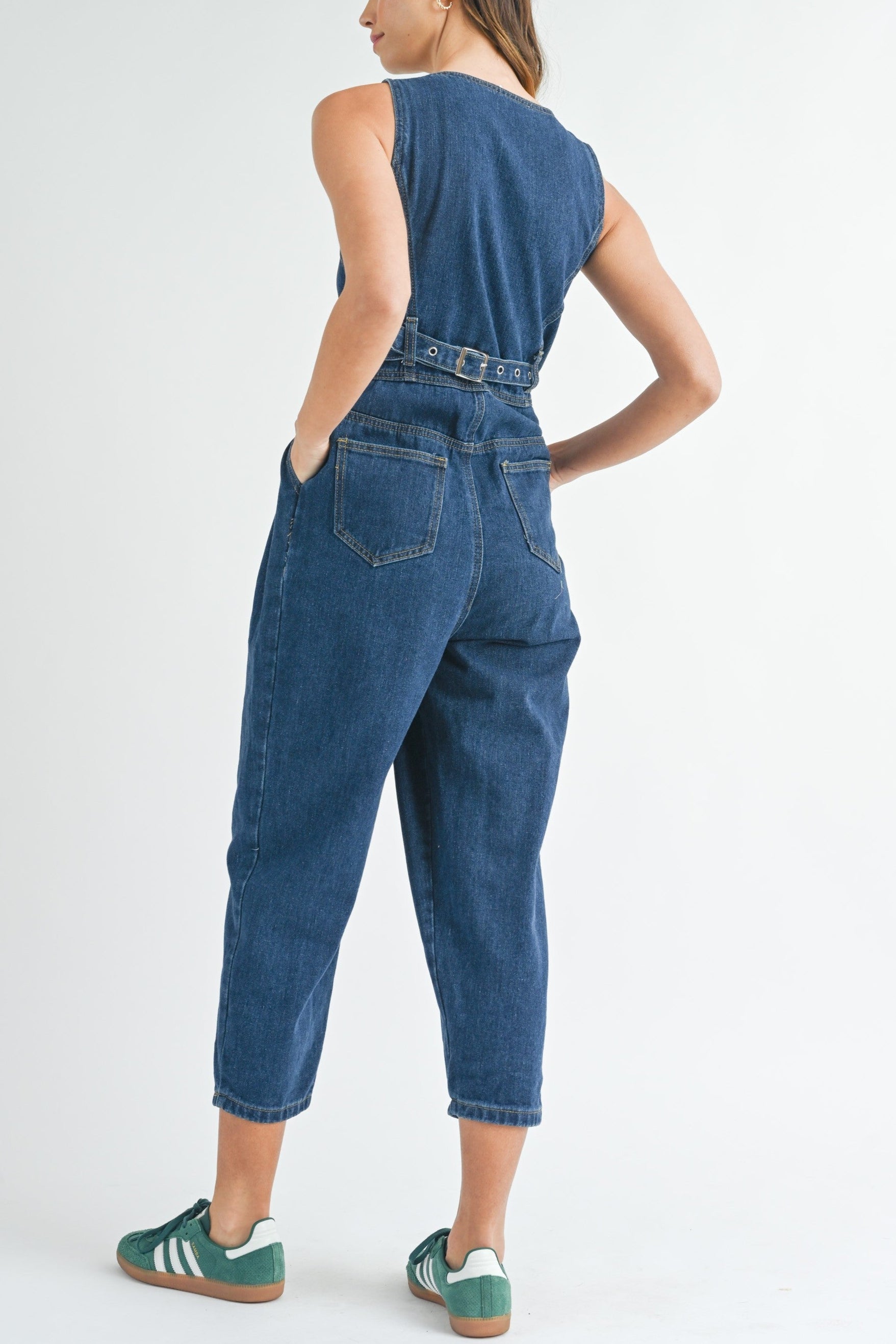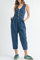 Expertly designed for a unique and stylish look, this sleeveless denim vest button down jumpsuit is a must-have addition to your wardrobe. With its cute and distinctive style, this jumpsuit will make you stand out in any crowd. Step up your fashion game with this one-of-a-kind piece.