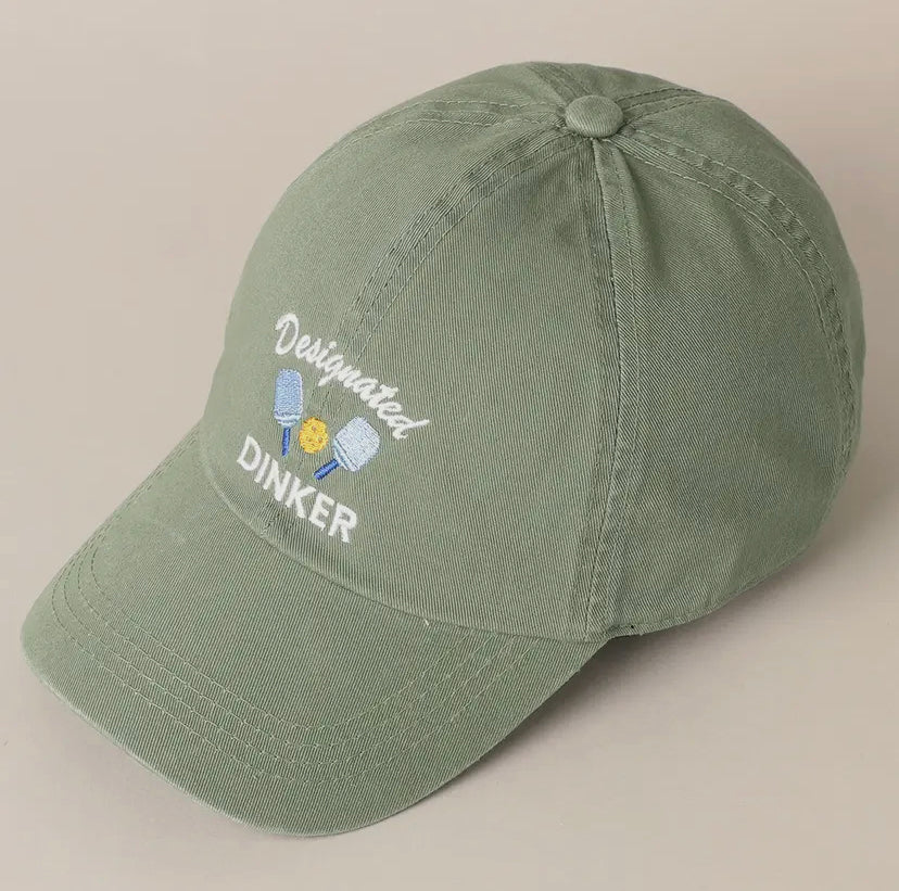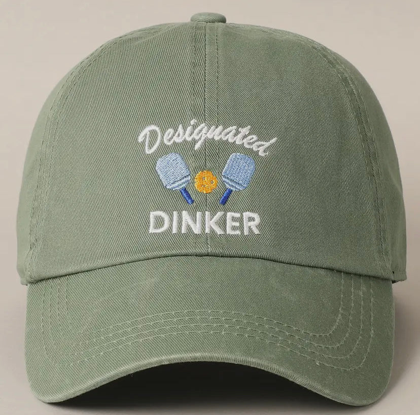 Designated Dinker Embroidered Baseball Cap in Sage Green