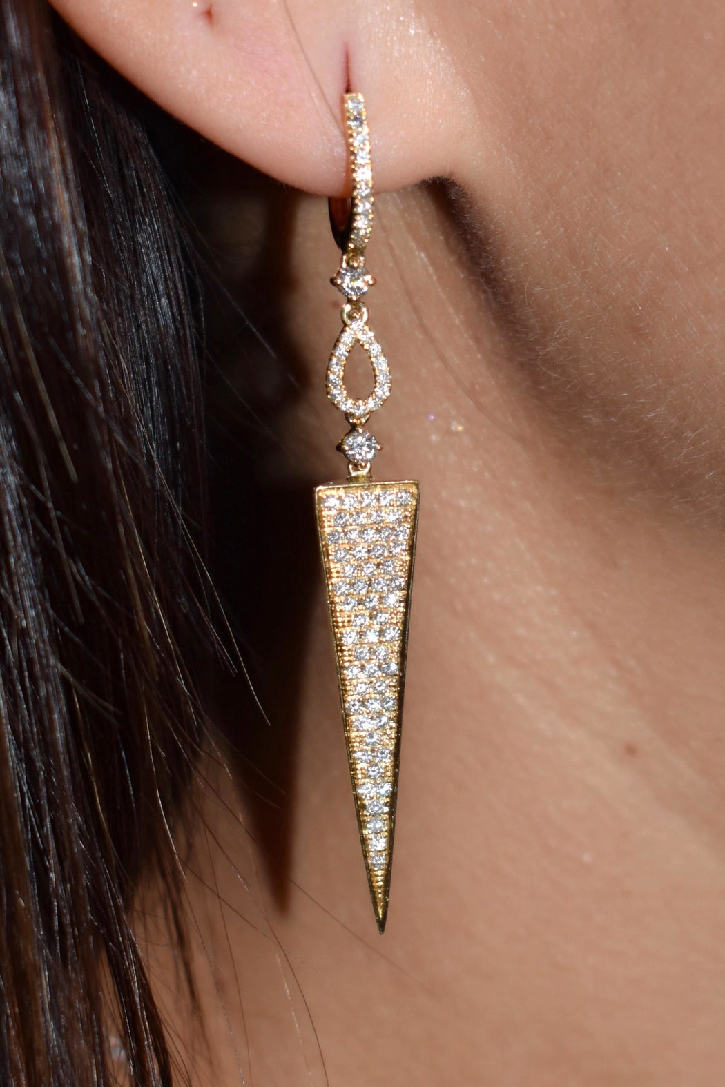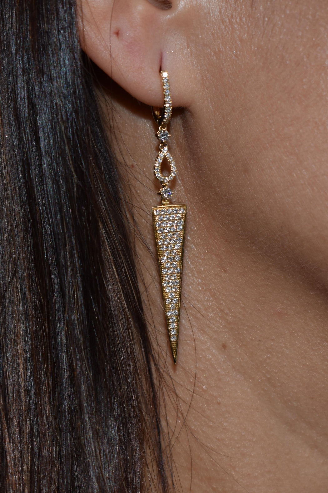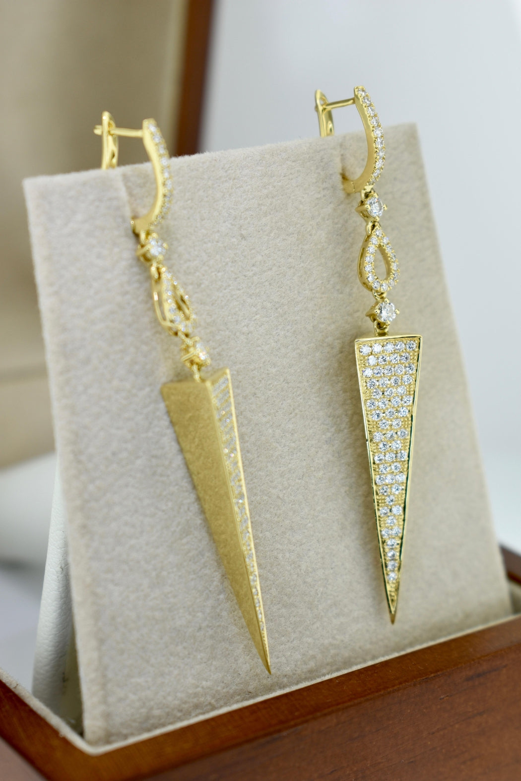 18kt Yellow Gold Pave Diamond (1.22cttw) Triangle Drop Earrings.