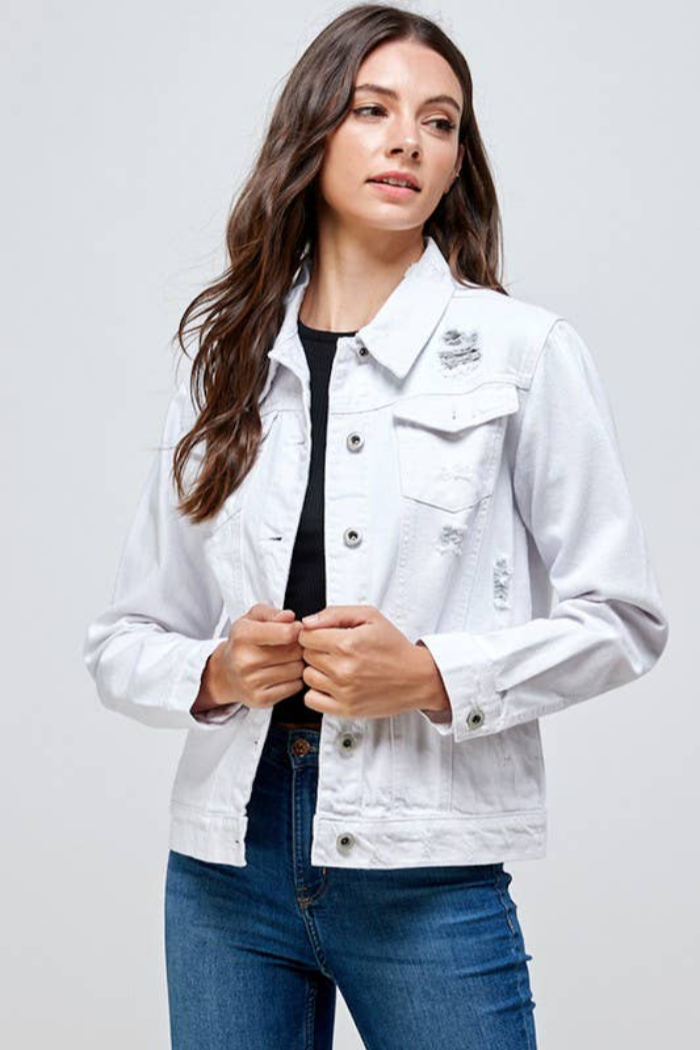 Women's Distressed White Denim Jacket