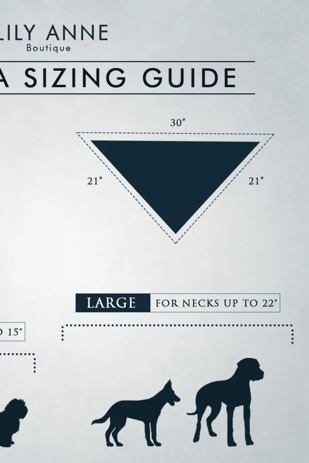 Large dog bandana: 21.5 x 21.5” square fits neck circumferences up to 22”.