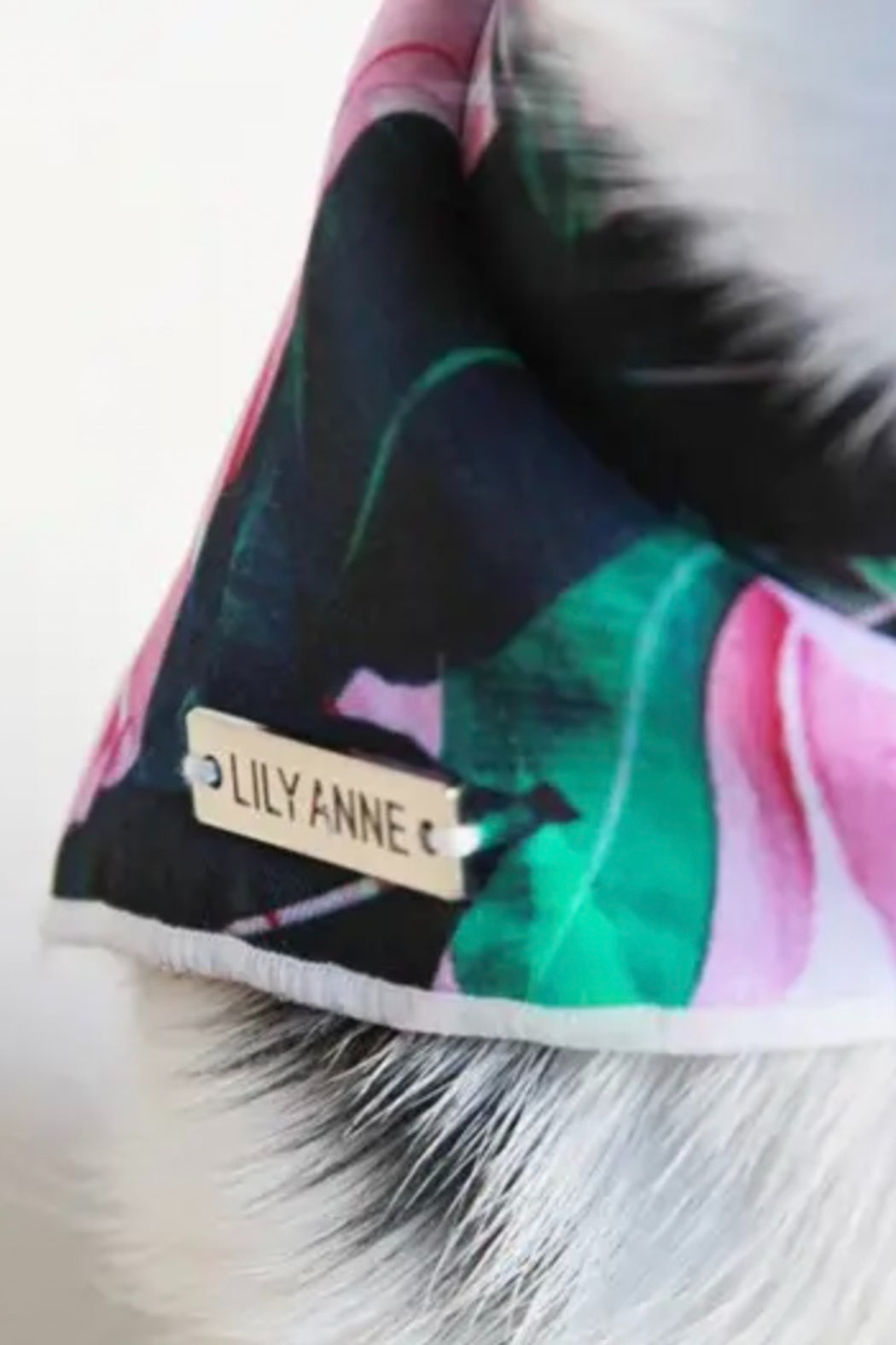 -The Kassia floral dog bandana is made from a soft and lightweight polyester and is finished with hand-sewn reinforced edges for increased durability.