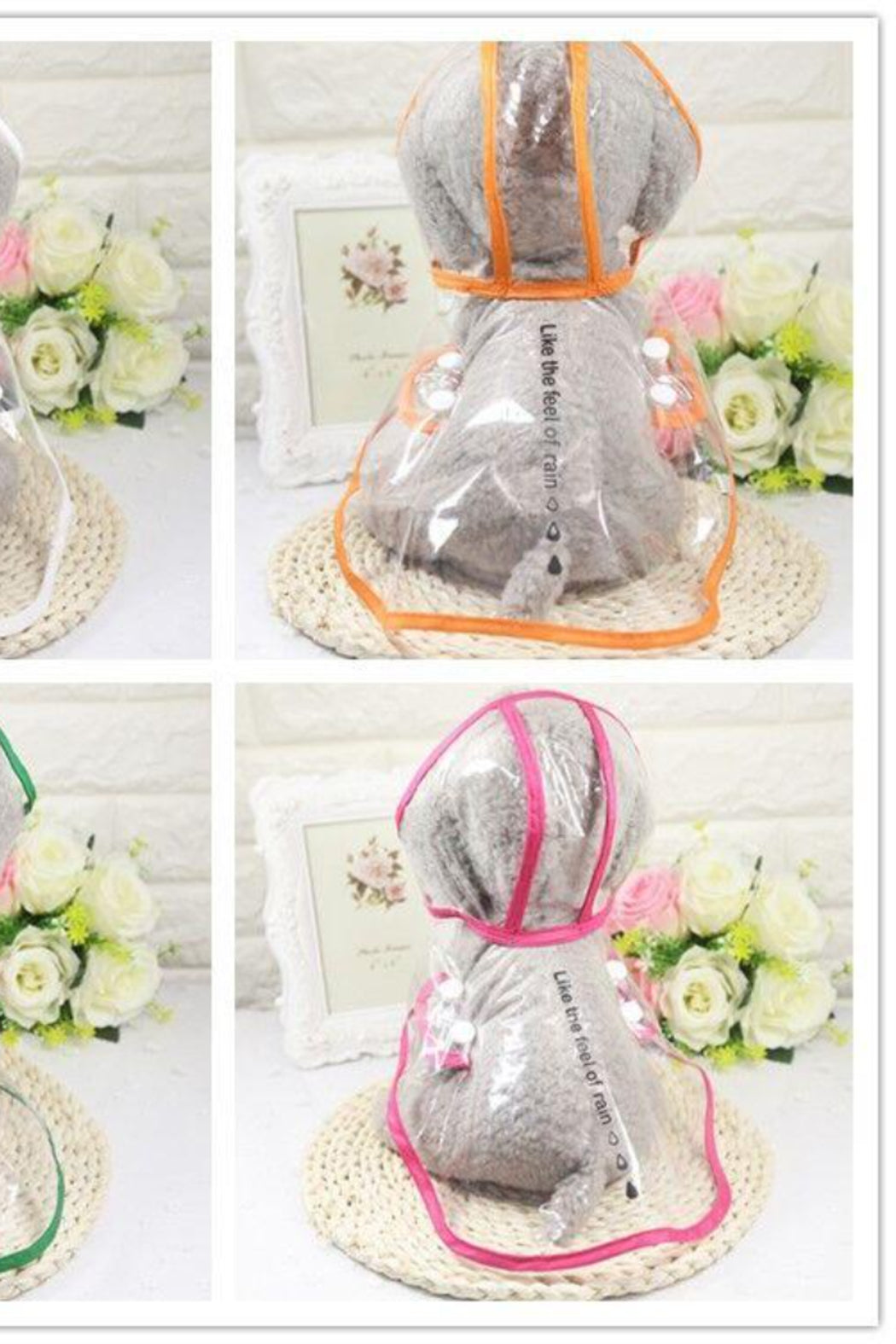 Transparent Dog Raincoat For Dogs. The back reads: Like the feel of rain!