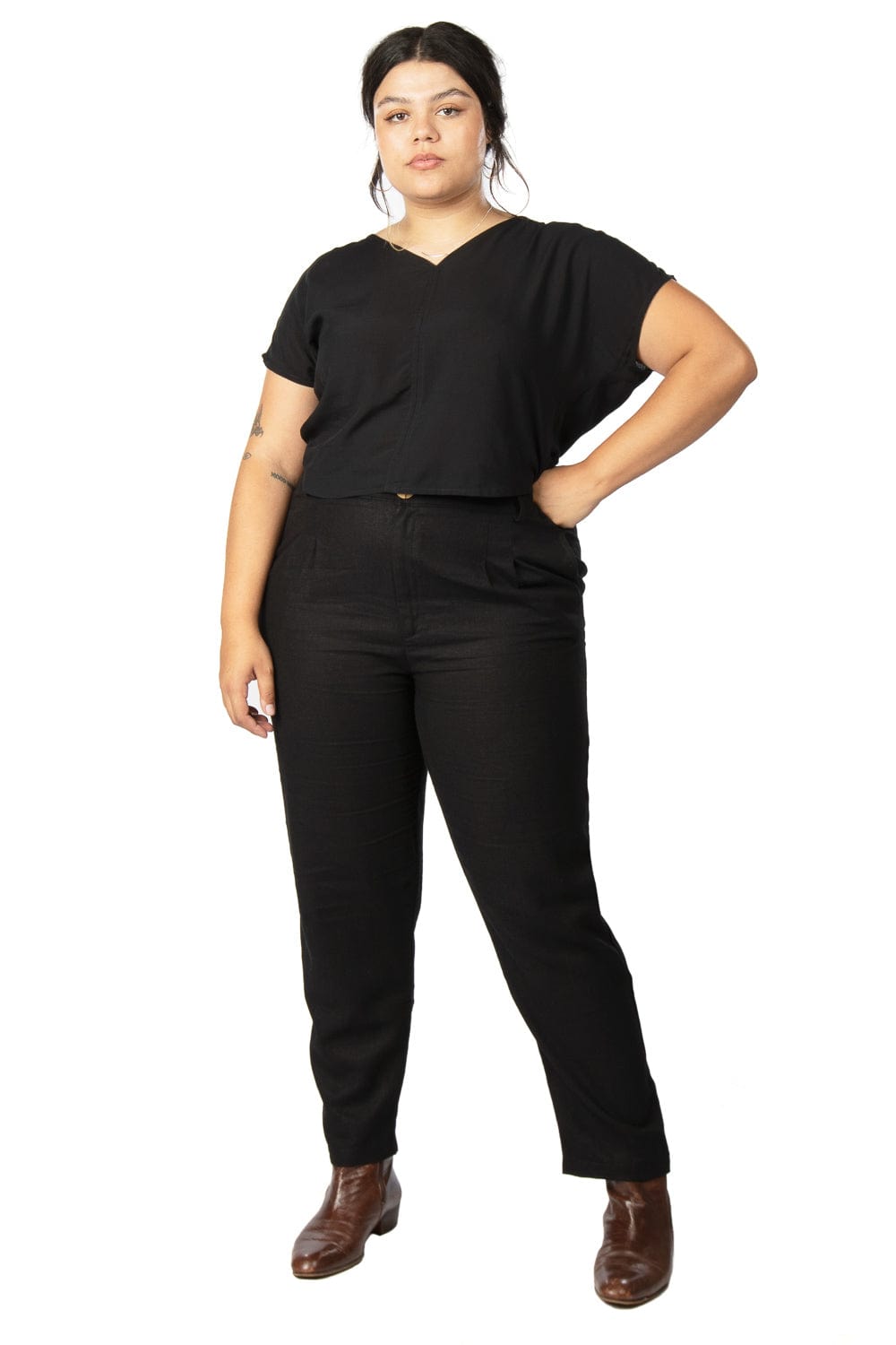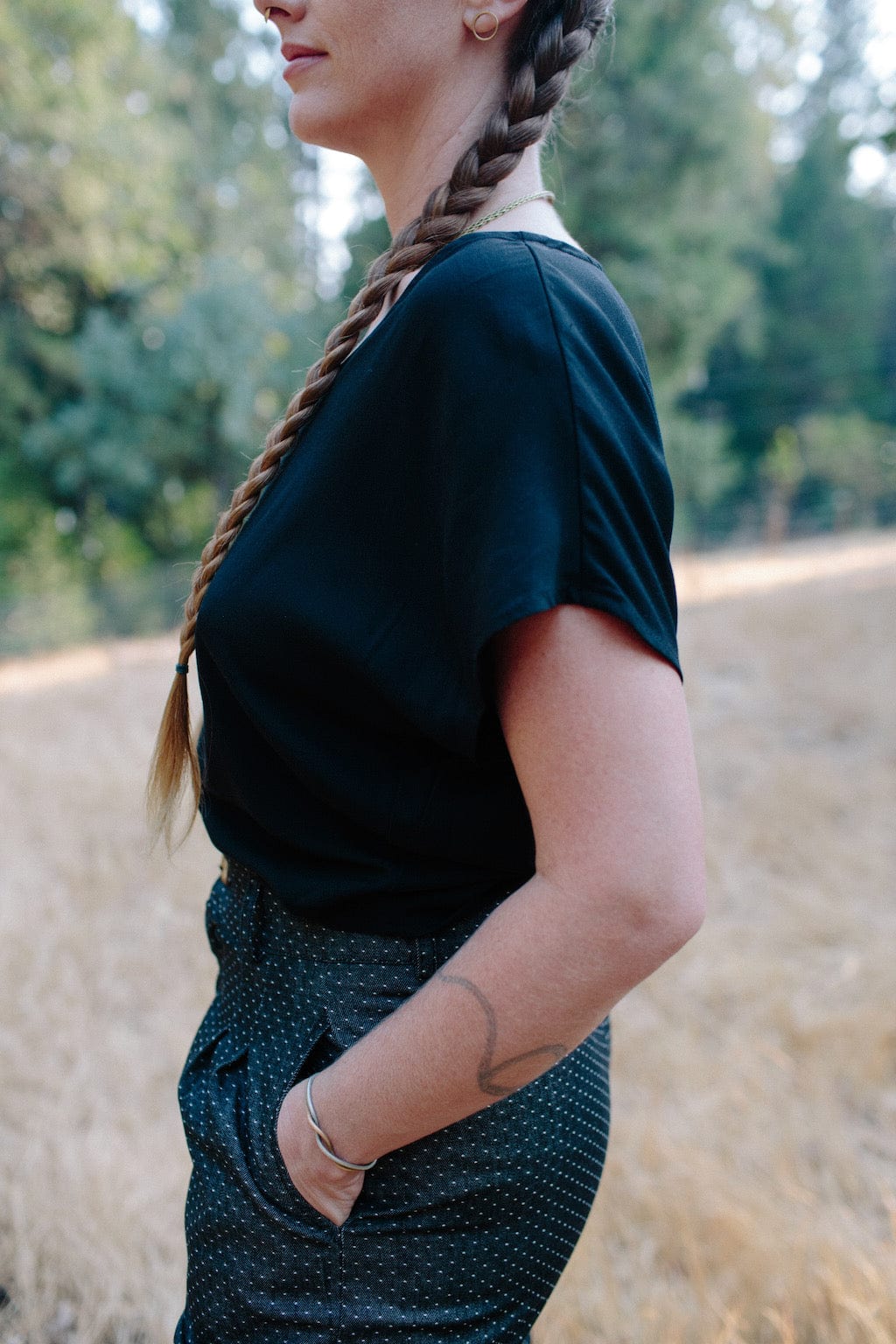 Our Dolman top is easy to wear, Cropped enough to be able to tuck in with out the extra bulk, or wear as is with out showing too much midriff. Joined together at center front & neck line with bias binding. Dolman sleeves for the perfect arm coverage. A loose yet structured look for the modern woman.