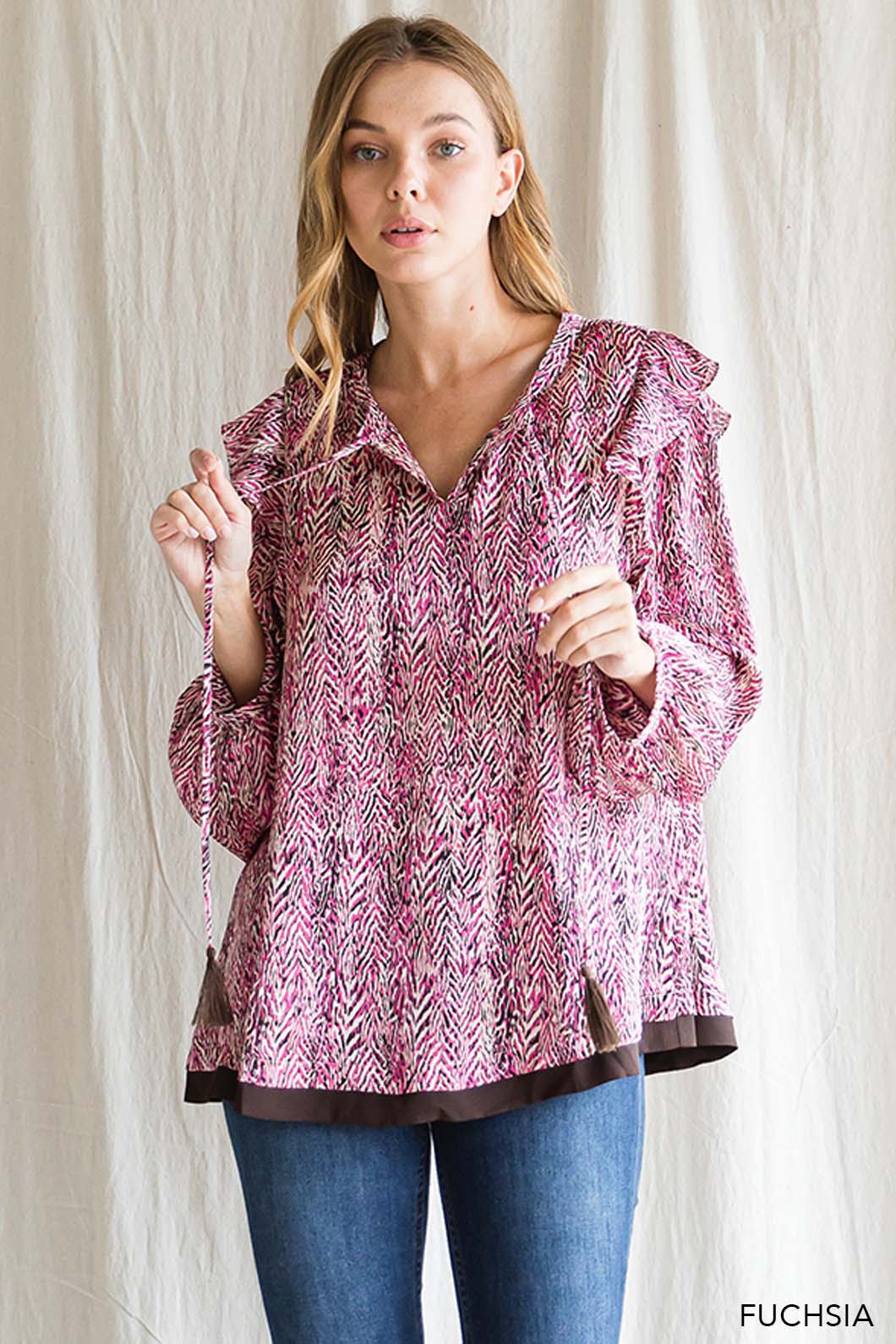 DOORBUSTER Herringbone Ruffle Top- Fuchsia