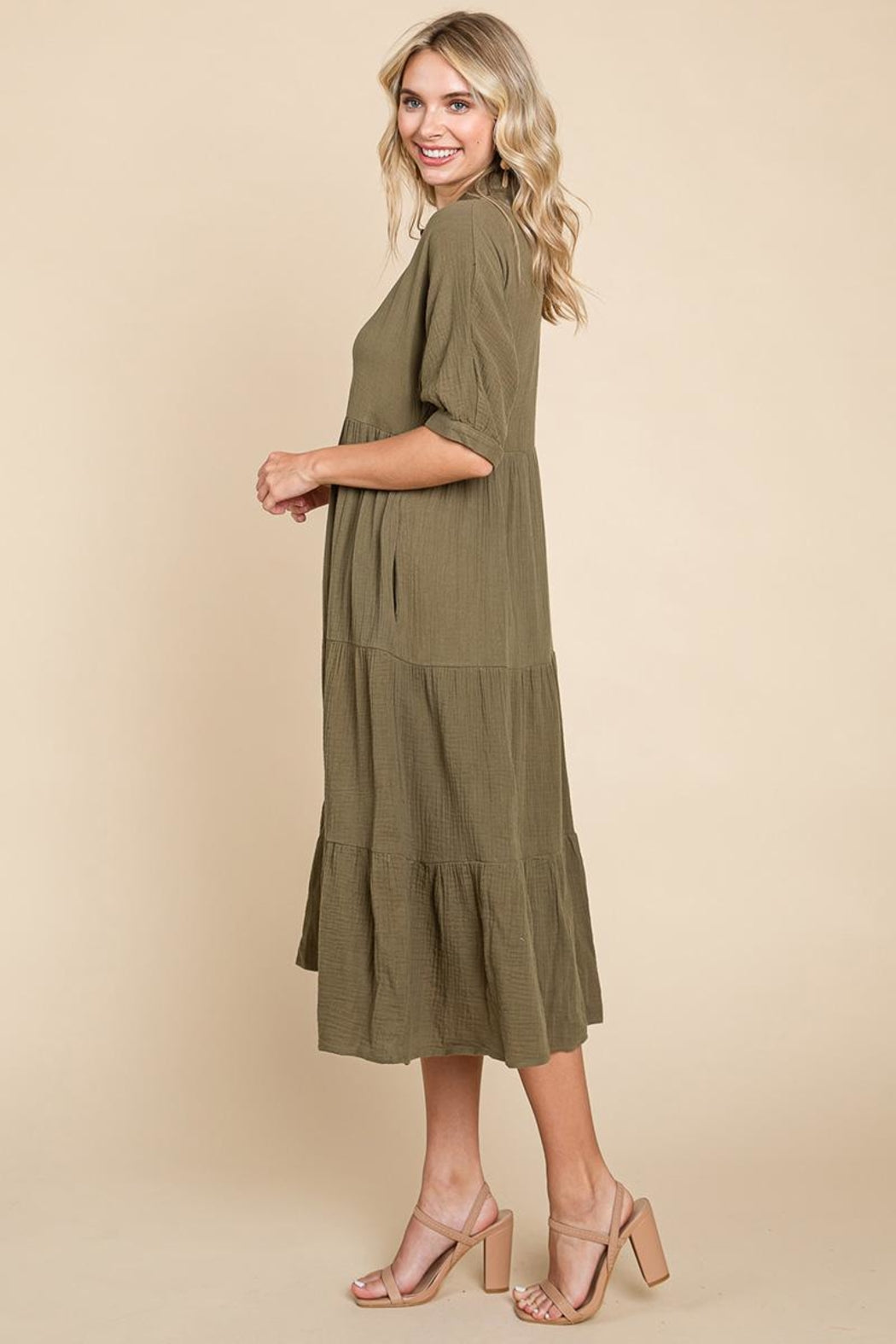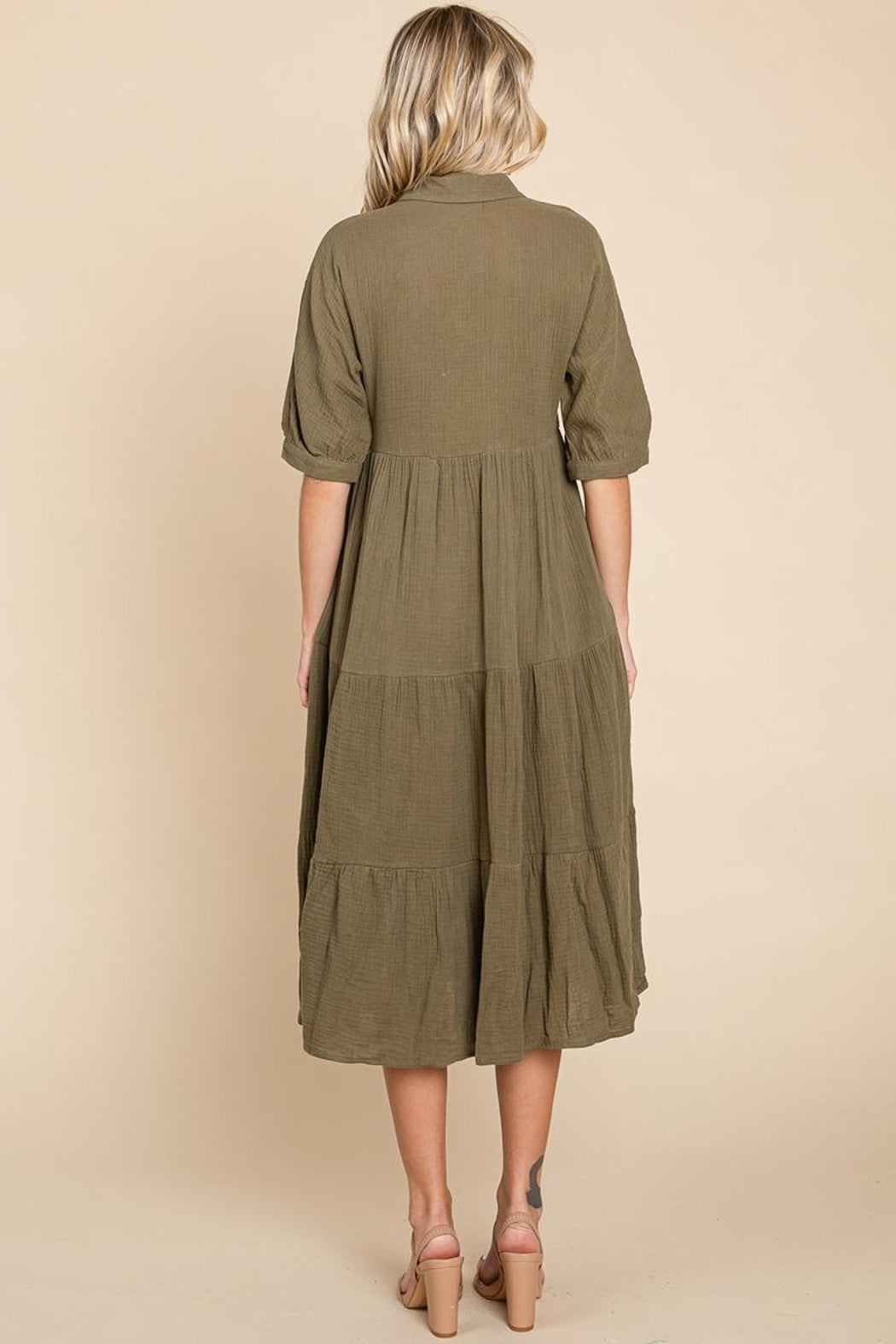 Double Gauze Tiered Cotton Midi Shirt Dress