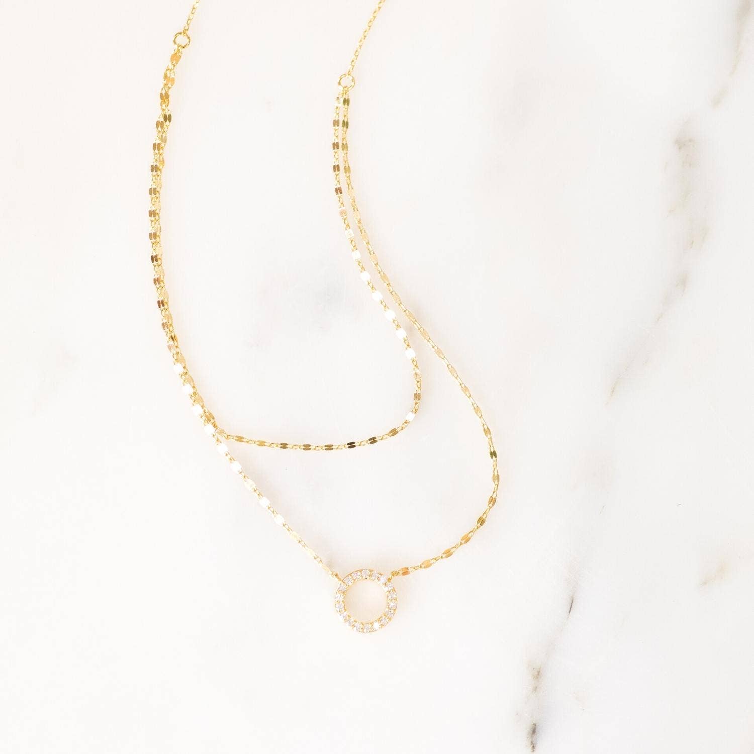 Double layer appeal - 1 layer delicate textured chain, 1 layer open pave circle