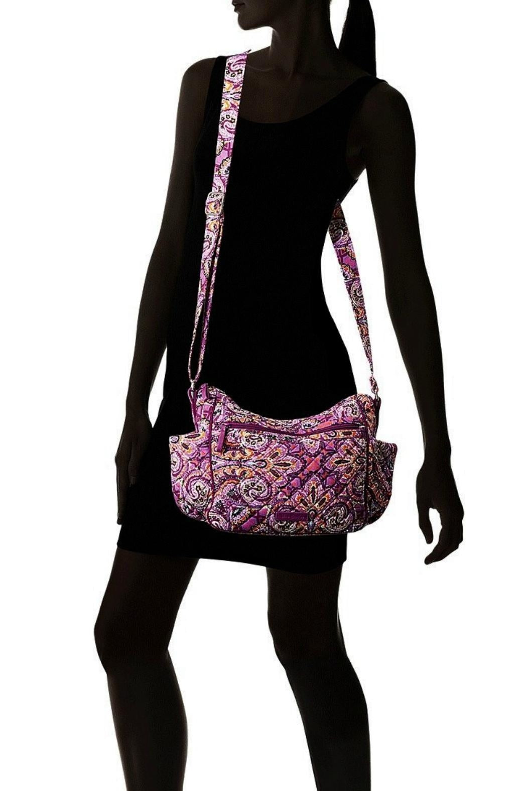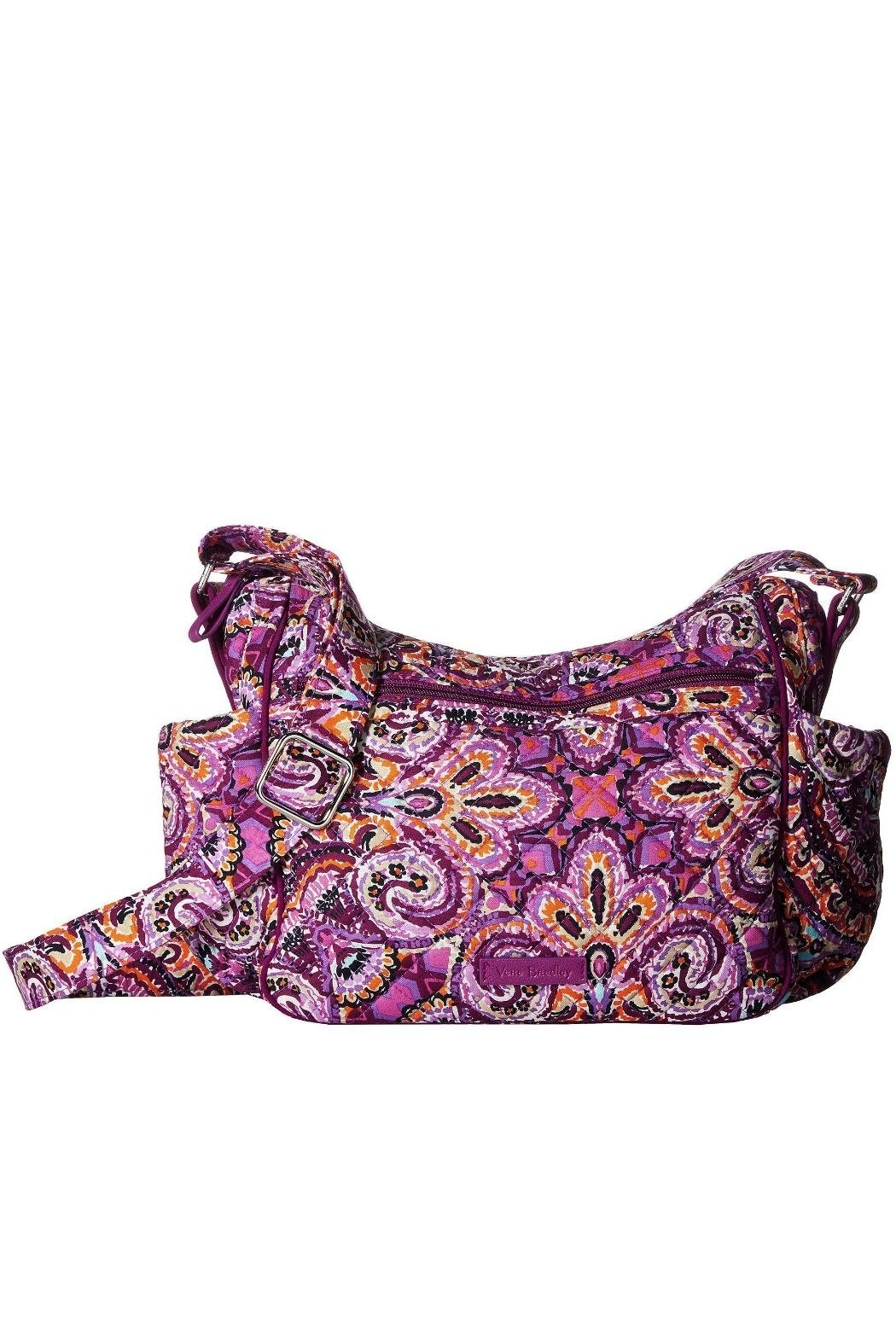 Here is the Vera Bradley Iconic On The Go Crossbody in the Dream Tapestry pattern. Get your day started off right with this great handbag made of soft ultra light weight quilted cotton. Top zip closure. Adjustable crossbody/ shoulder strap. Exterior features large front zipper compartment and two side slip pockets, any of which would be great for phone or keys. Interior features two slip pockets and one zipper pocket, with coordinating poly satin printed lining. Flat base for easy upright structure. Silver tone hardware and signature detail on front. Click on "Mimi's Gift Gallery" to find other bags and accessories in the Dream Tapestry and Dream Diamonds patterns.