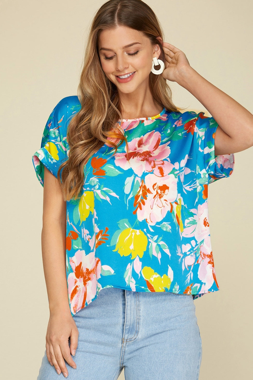 Drop shoulder boat neck woven floral print satin top is the perfect summer top, it can easily be paired with jeans or white pants. You could even pair it with a skirt to dress it up more. The model is 5'8 for length reference. It is a nice lightweight top that can easily be worn year round.