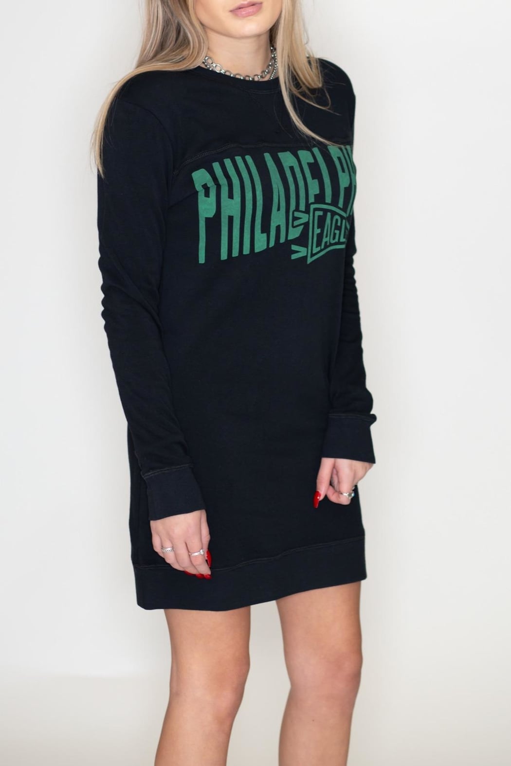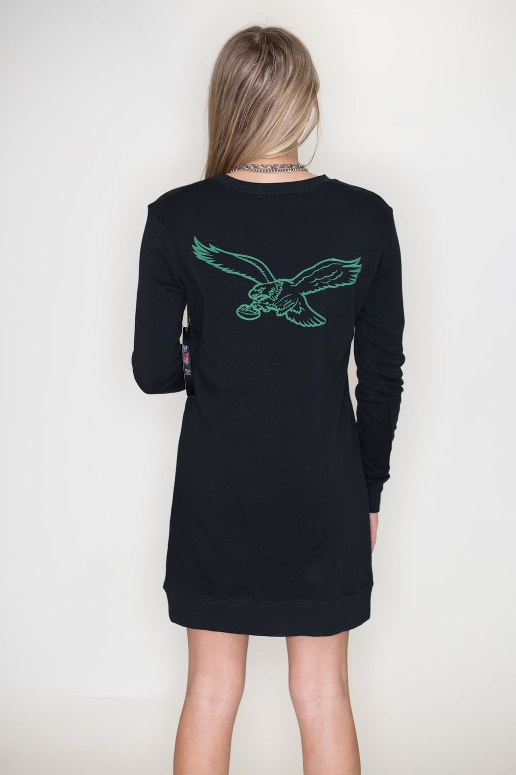 Philadelphia Eagles long sleeve fleece sweatshirt dress. Philadelphia Eagles banner print on front and logo on back.