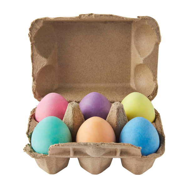 Hatching soon, our Easter Egg Sidewalk Chalk is here for Spring! The set comes with six egg shaped sidewalk chalk. The chalk is washable. The chalk set comes in an egg carrier. The chalks feature bright colors including yellow, green, pink, orange, pink and blue. The set is intended for ages 3 and older.