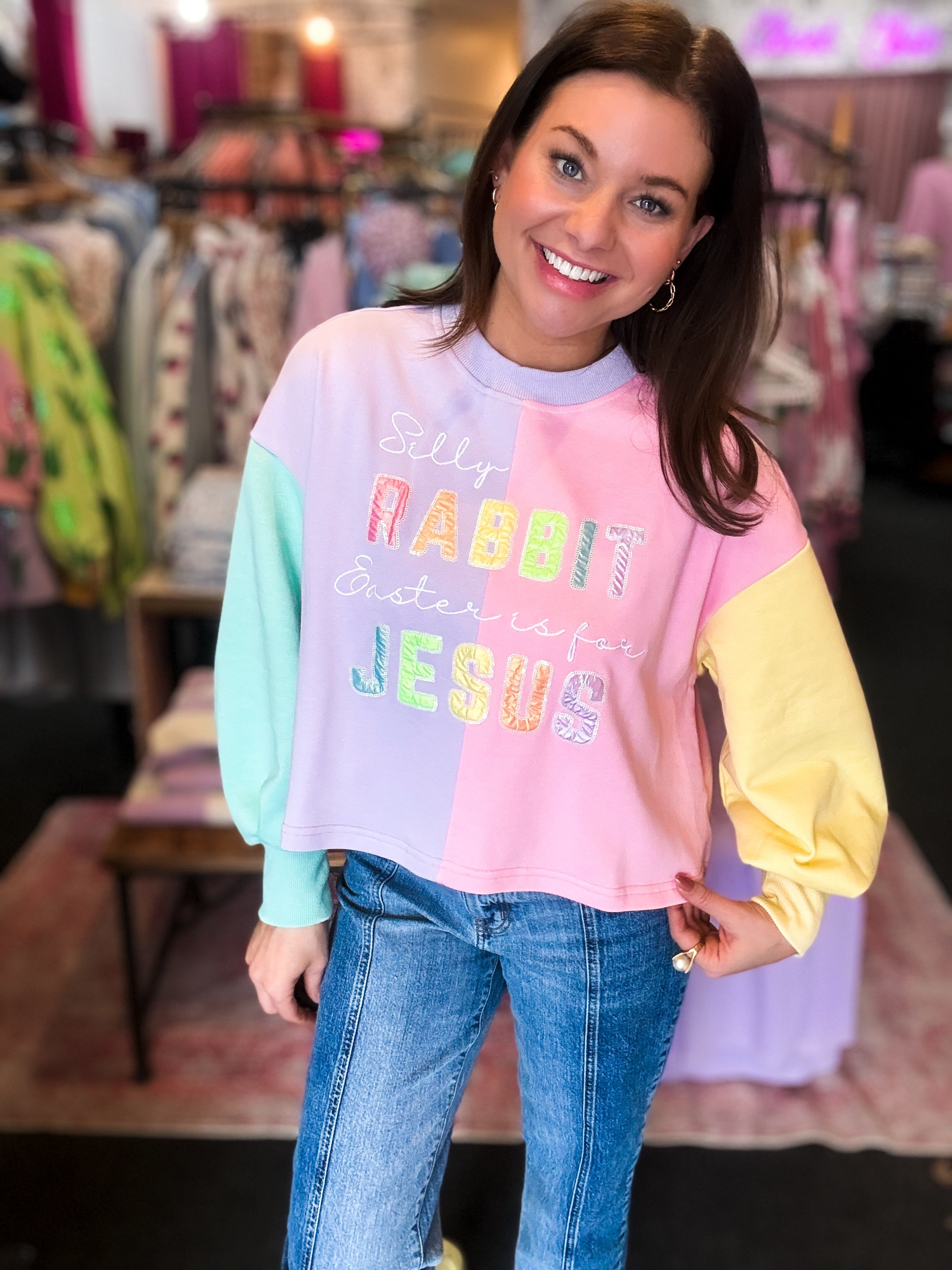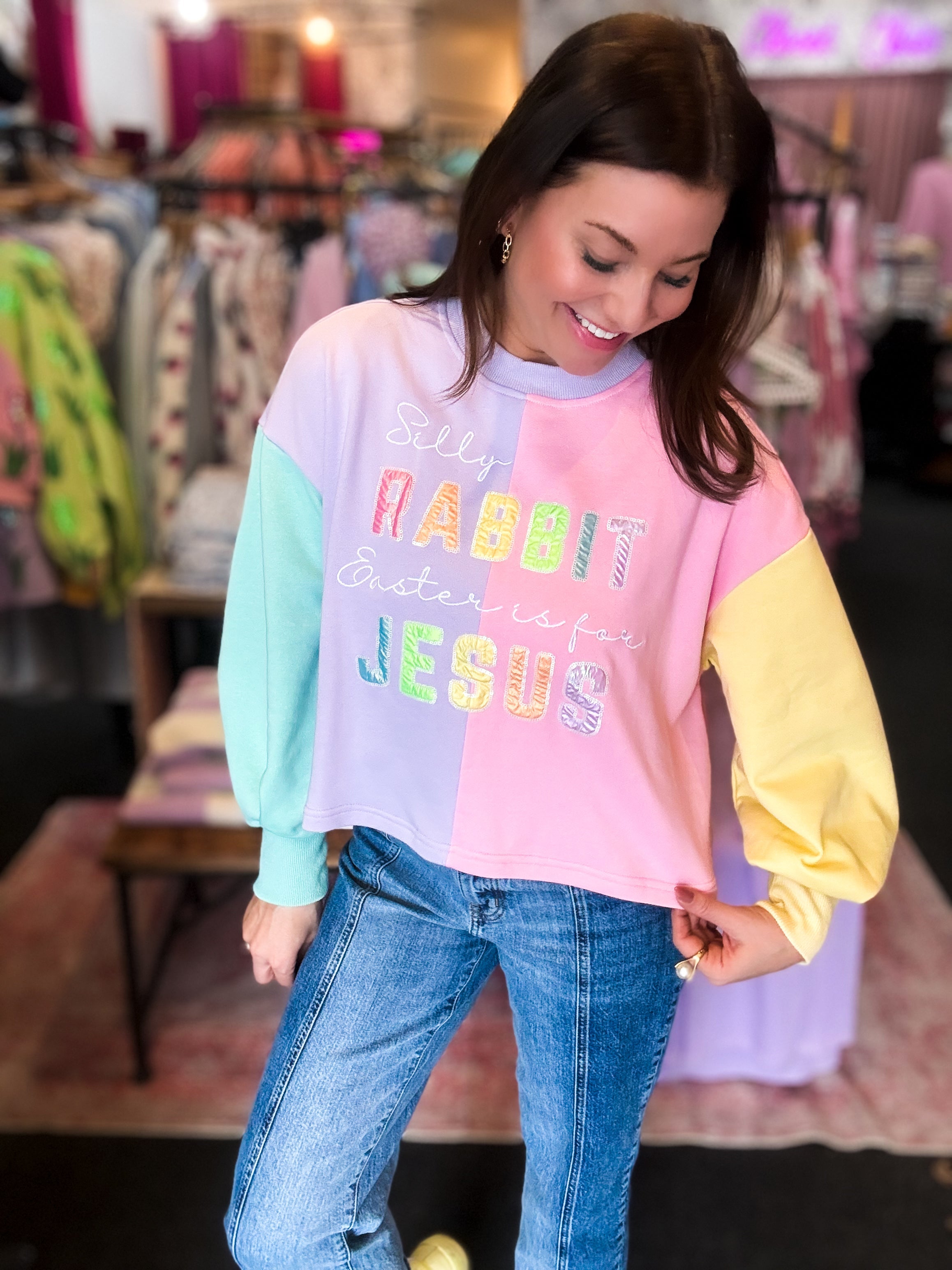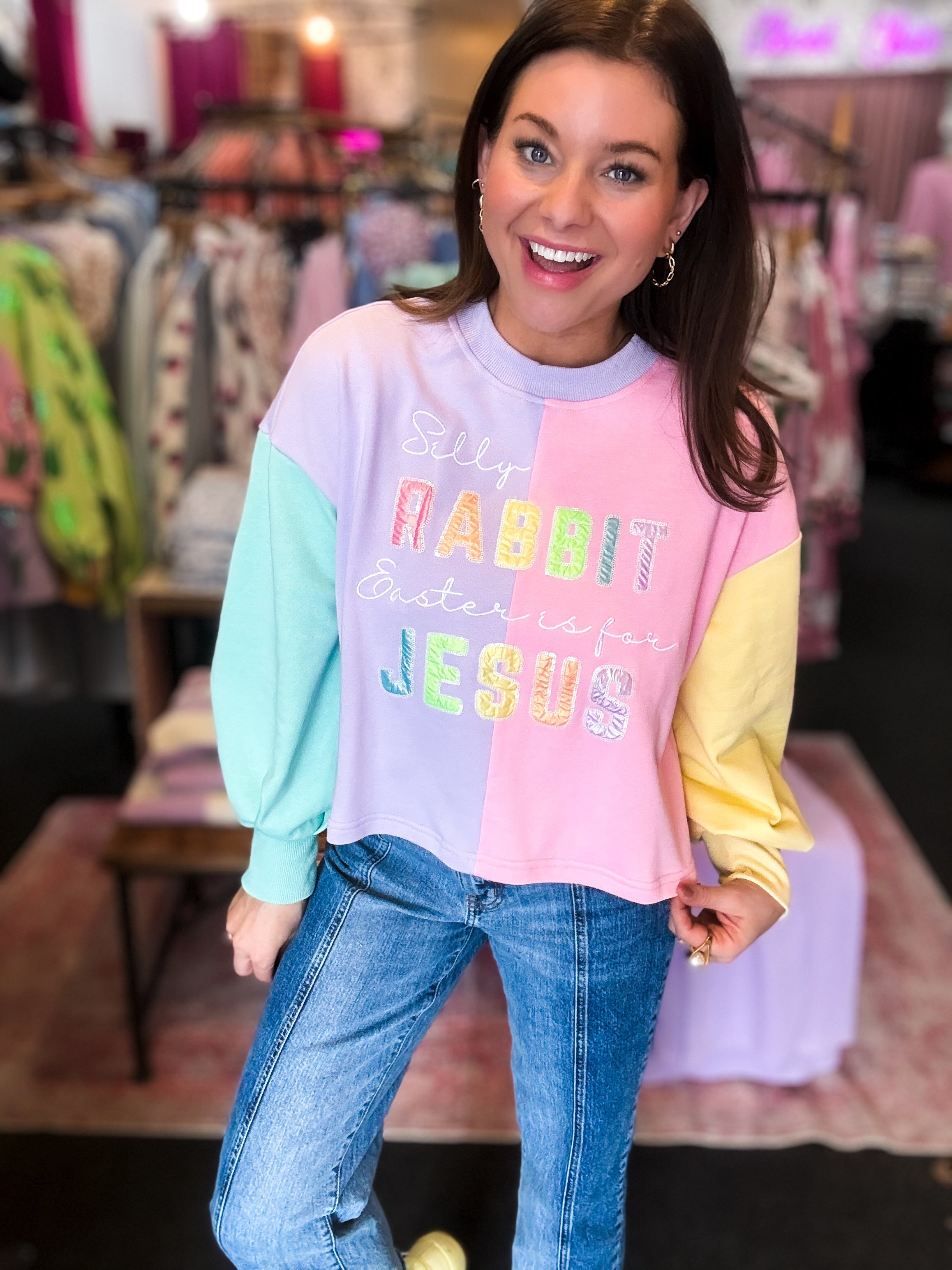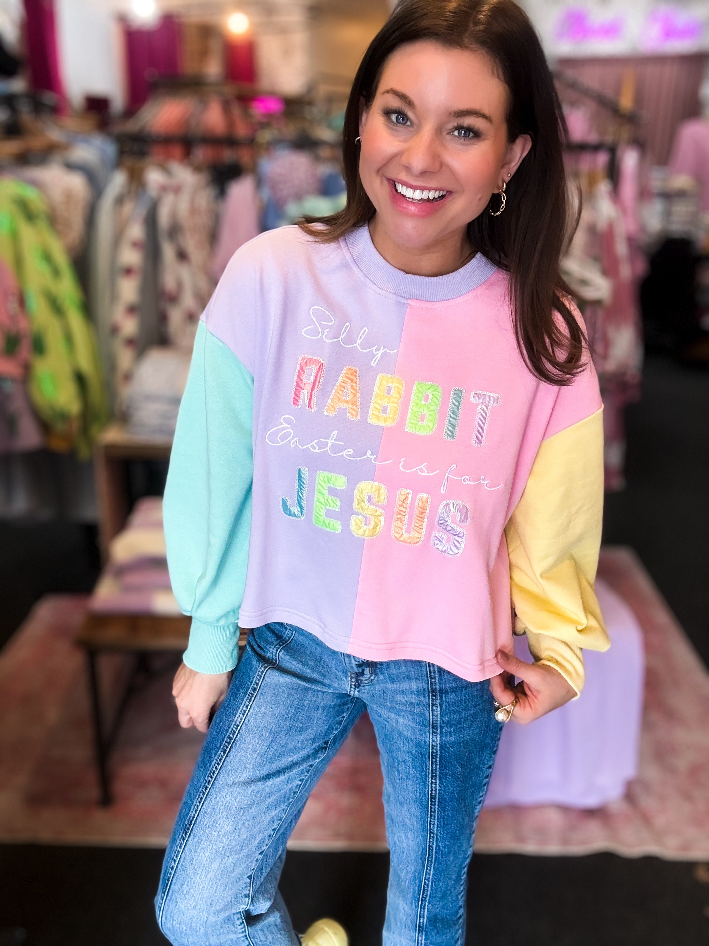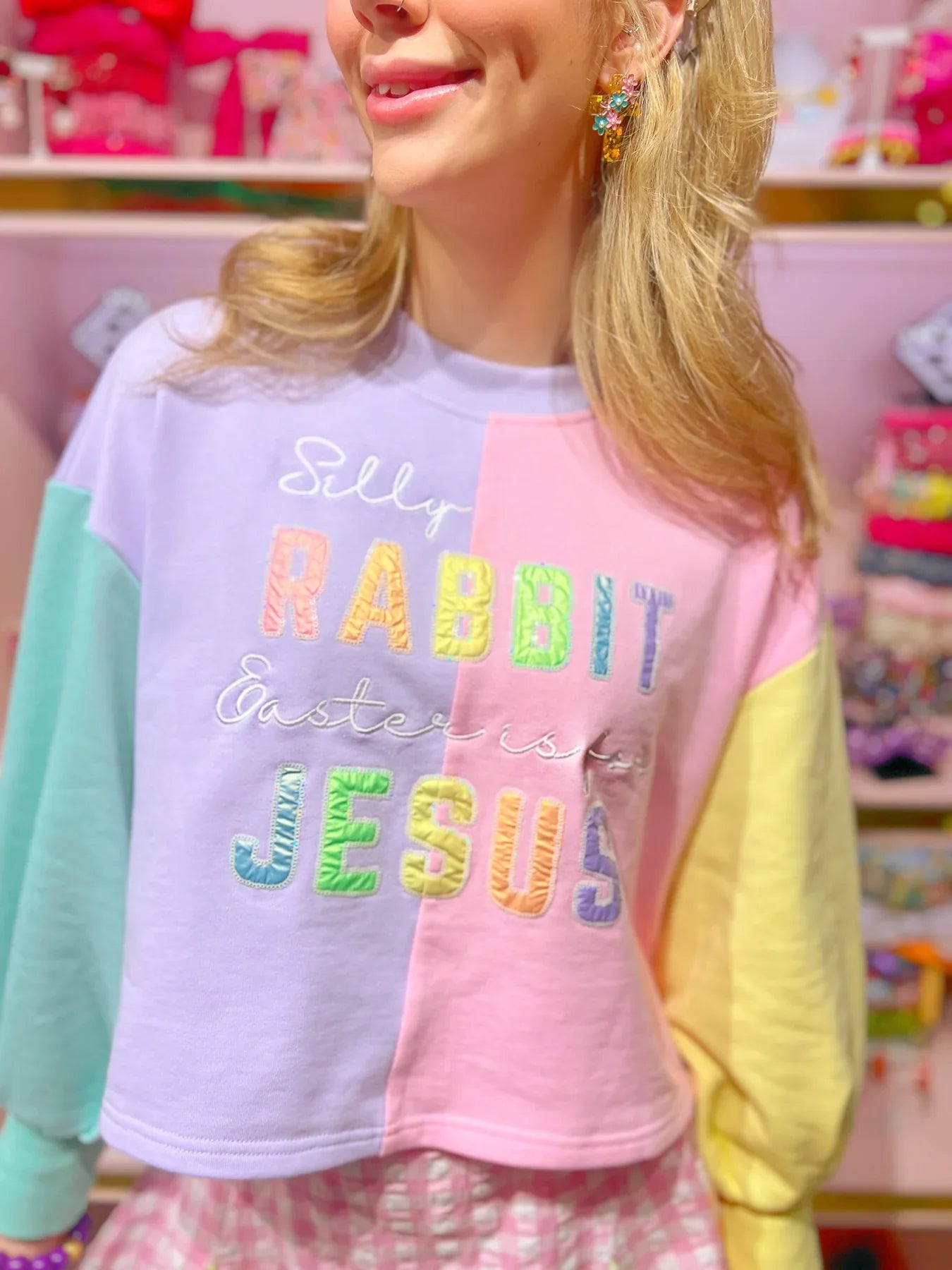 Easter is for Jesus Cropped Color Block Sweatshirt