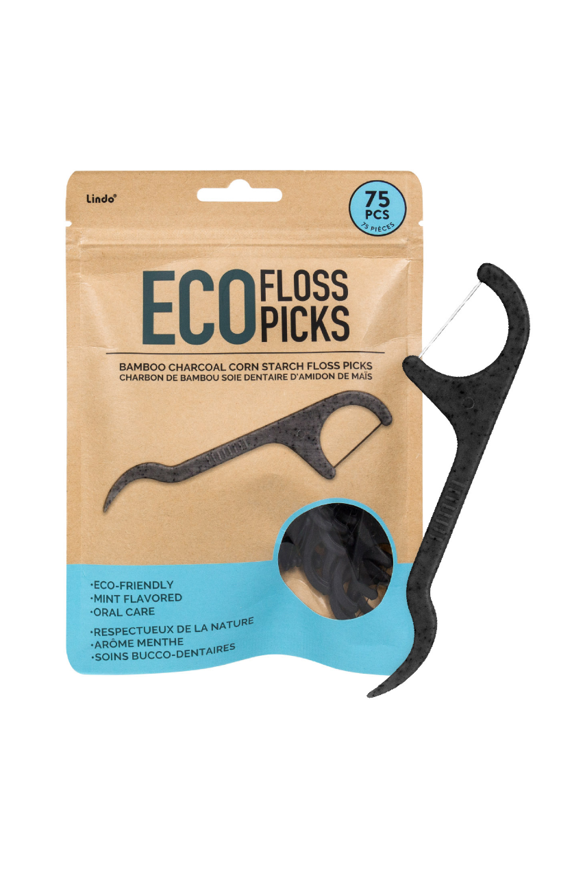 Reduce your environmental impact and ecological footprint with our sustainably sourced Charcoal floss picks. Our Eco Floss Picks feature a durable dupont nylon thread that effectively removes food in between your teeth. Use our floss picks daily to help prevent bad breath and gum disease. Free of any environmentally harmful materials such as PFAs, PVC, and BPA.