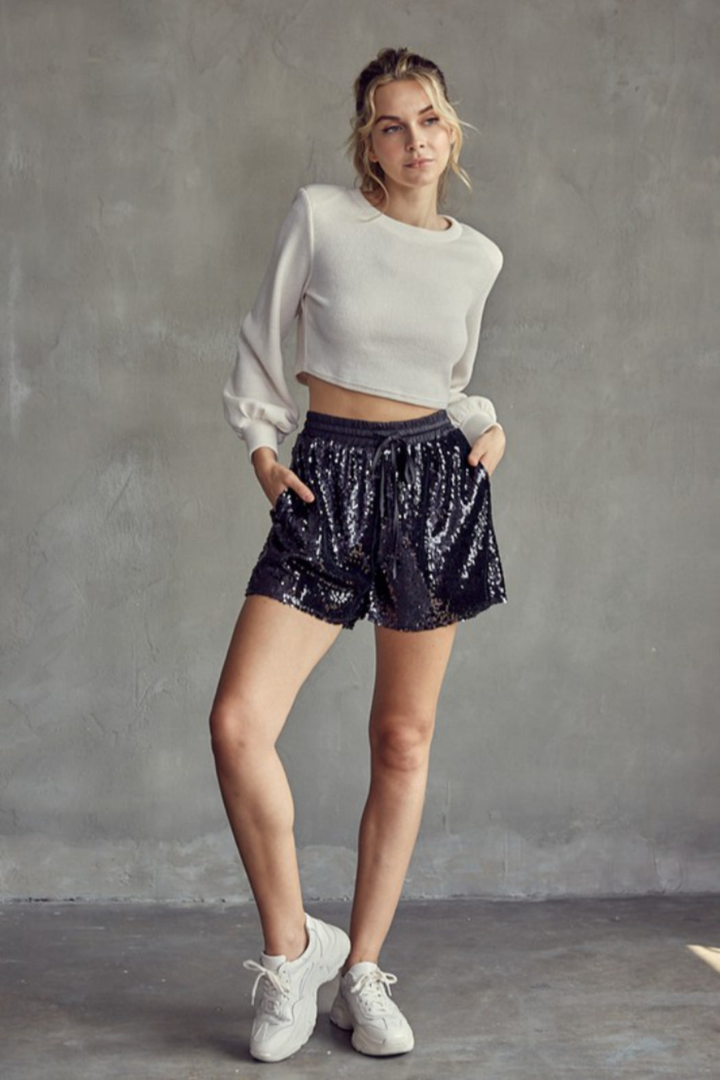 ELASTIC WAIST SEQUINS SHORTS. LINED.