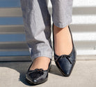 Comfortable & classic pointy ballet flat with thin adjustable bow.