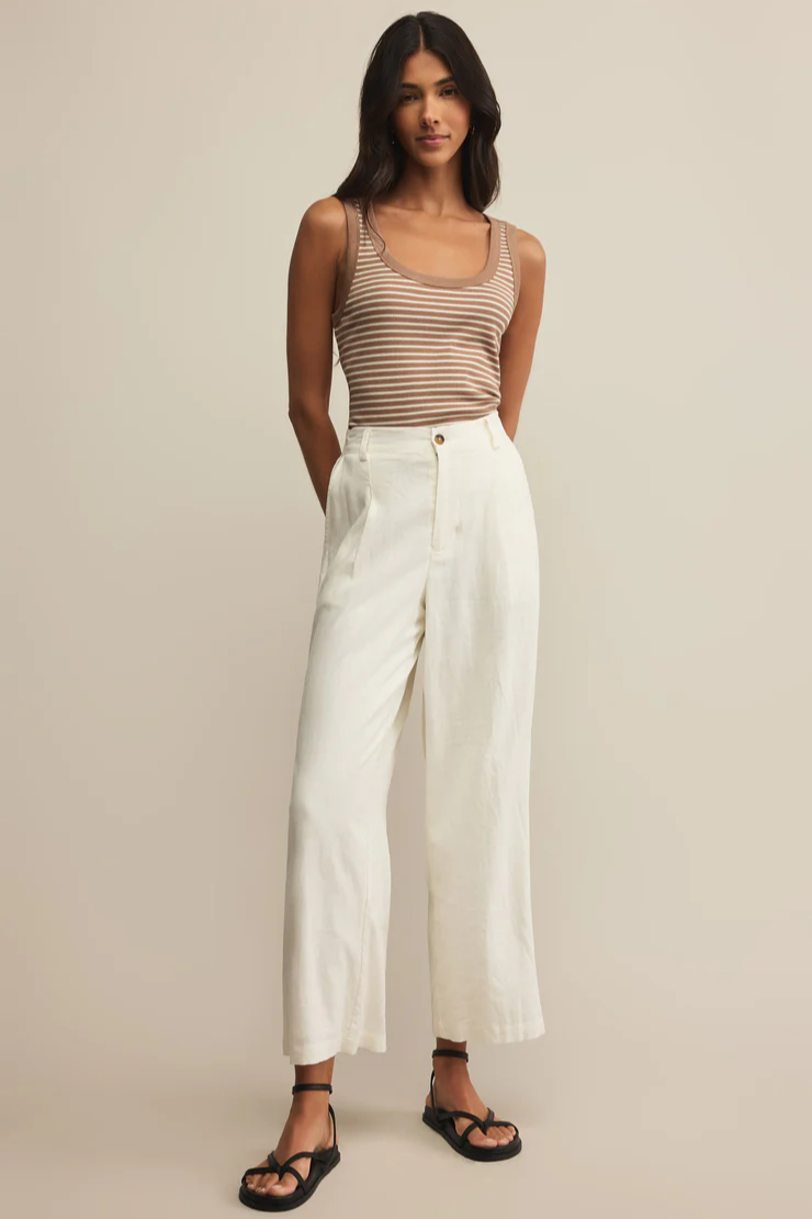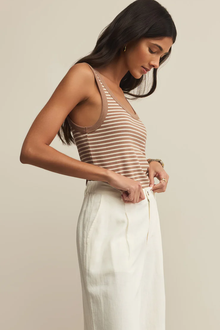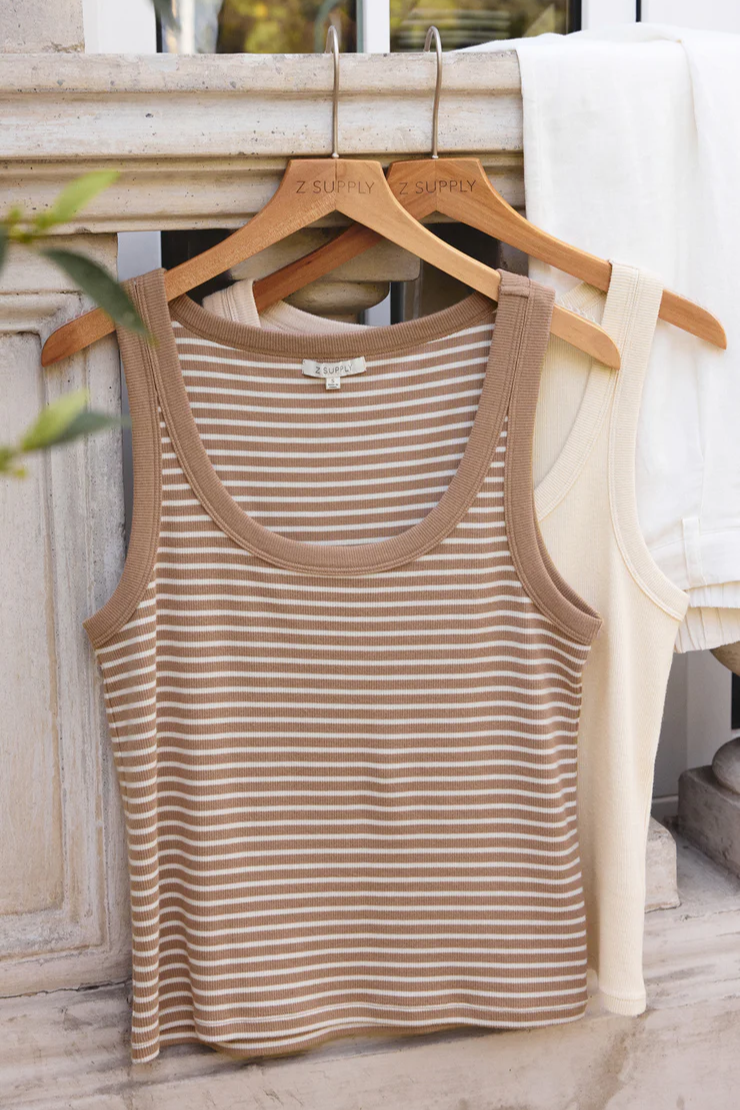 Classic with a twist, this fitted rib tank features a timeless yarn-dyed stripe and a flattering scoop neckline. Made from a comfy cotton-modal blend, it’s bra-friendly, versatile, and perfect for layering or wearing solo.