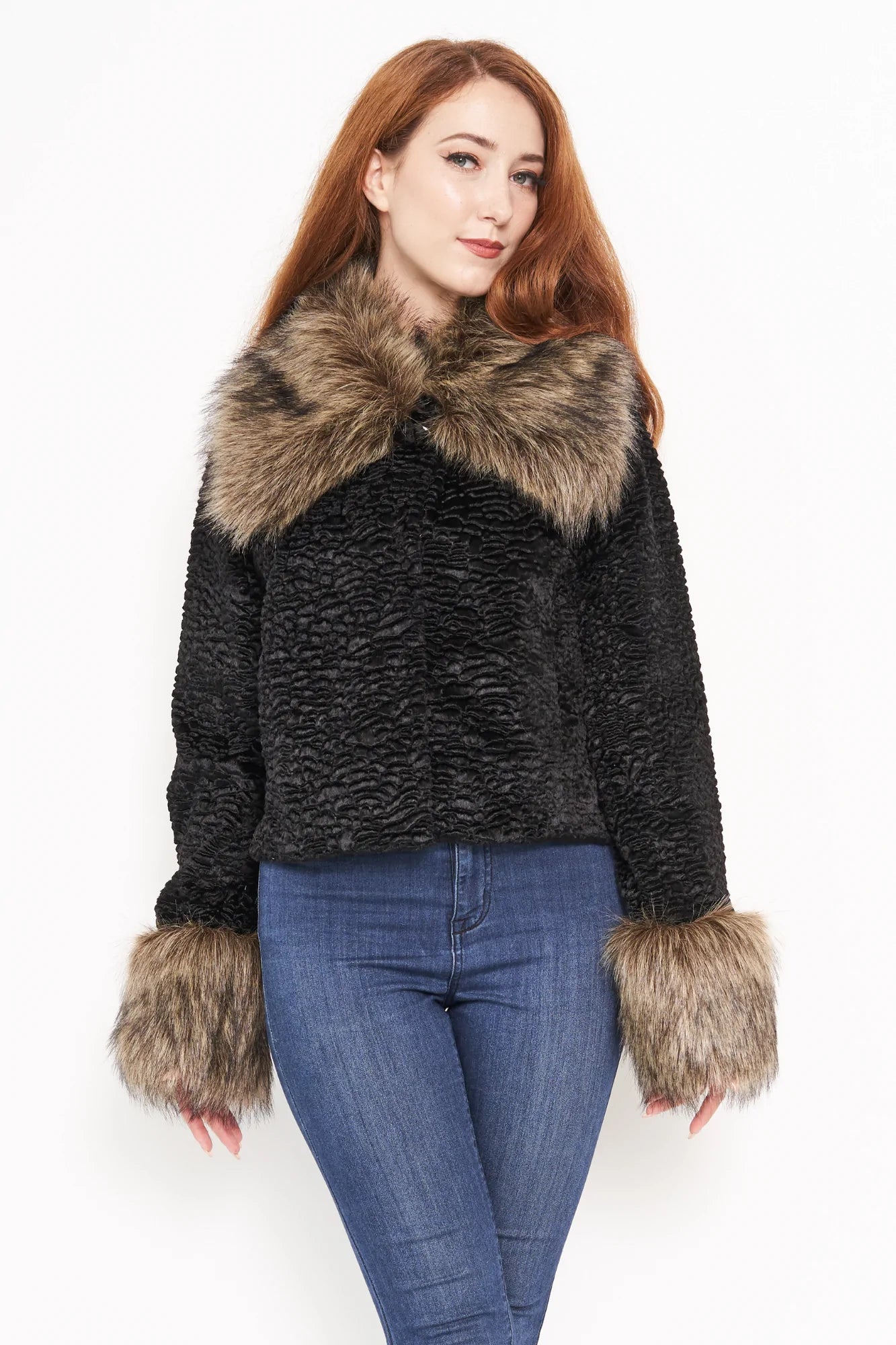 • Faux Ocelot Fur: 83% modacrylic, 17% polyester; Faux Saxon Fur: 57% modacrylic, 30% acrylic, 13% polyester; lining: 100% polyester