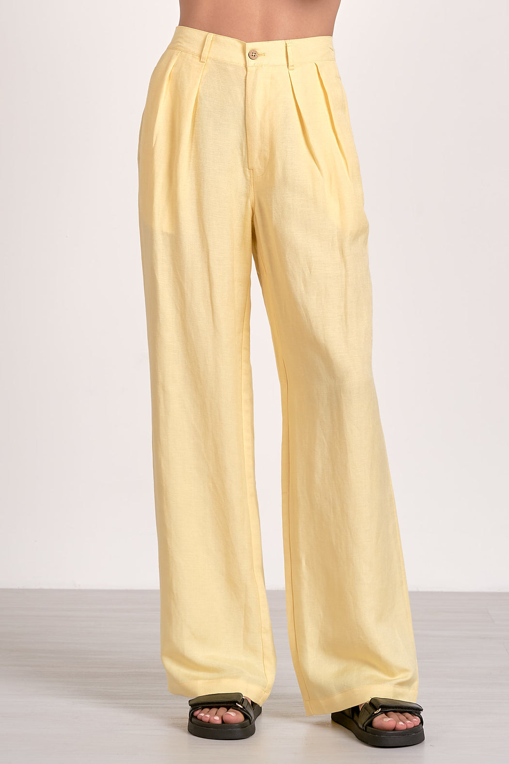 A relaxed silhouette with tailored charm, the Elora Pants are your go-to for understated sophistication. Designed with a flattering high-rise waist and crisp front pleats, they offer an effortlessly polished look while keeping comfort at the forefront. The wide-leg cut flows with ease, creating movement that feels as natural as it looks refined. Finished with a button-zip closure and practical side pockets, Elora transitions seamlessly from daytime errands to elevated evenings. Whether styled with a fitted tank or a billowy blouse, these pants bring timeless versatility to your wardrobe.