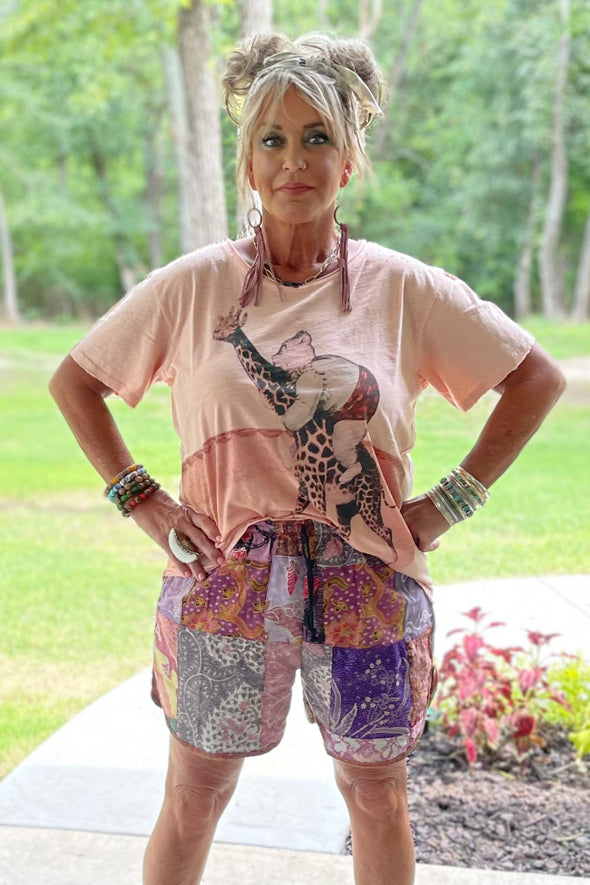You’ll be riding high in this 🐘Ember Moon Dance tee – no question! Crafted with 100% prewashed cotton for extra softness and a generous, relaxed fit, it’s perfect for maximum comfiness. Plus, a fun and quirky giraffe graphic on the front with distressed shoulders make it the ideal party piece. 🤩