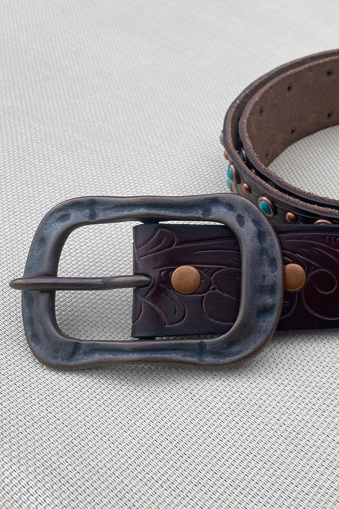 EMBOSSED LEATHER WESTERN BUCKLE BELT