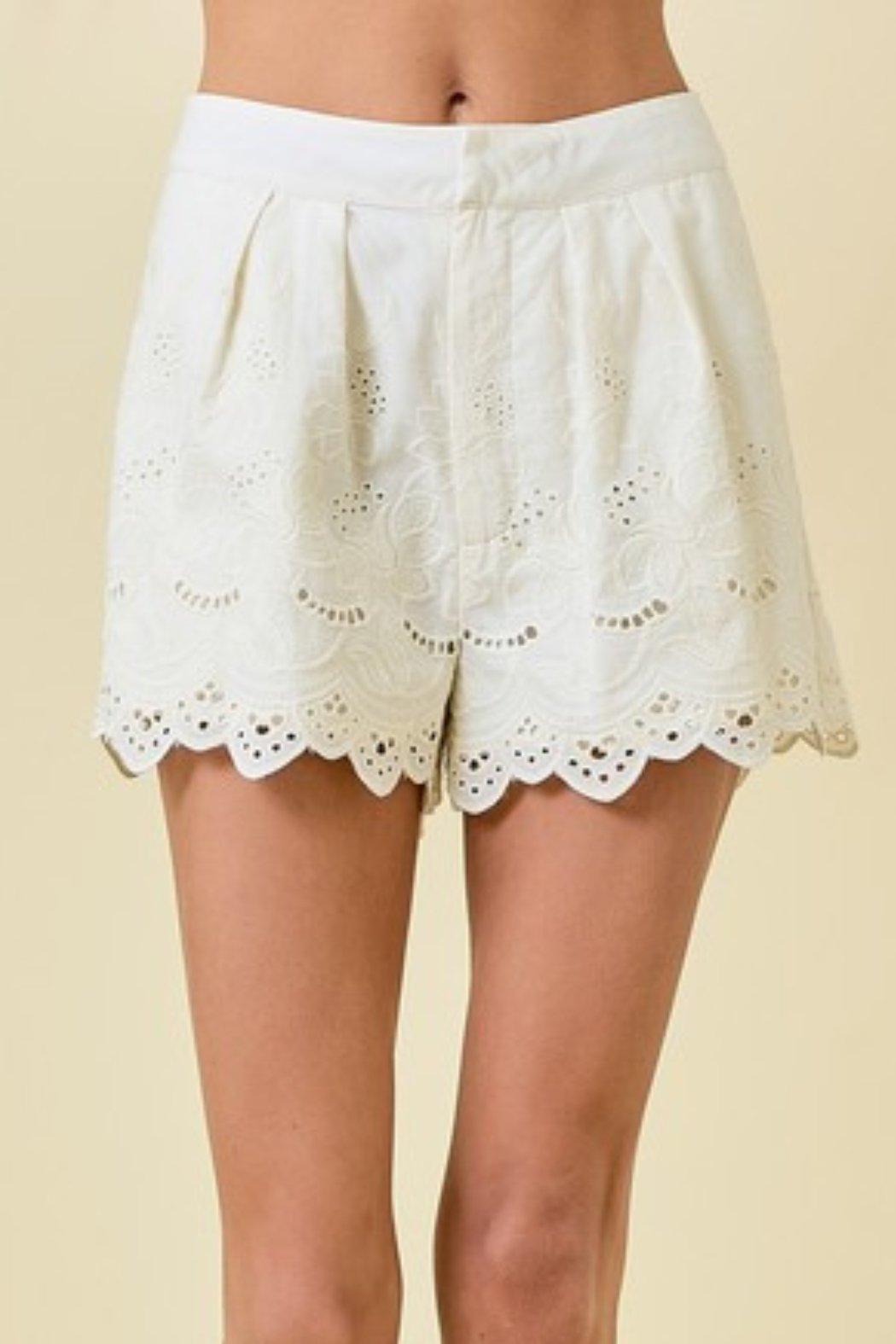 Embroidered High Waisted Double Pleated Shorts MODEL IS WEARING A SIZE SMALL / HEIGHT: 5'10" Made in CHINA