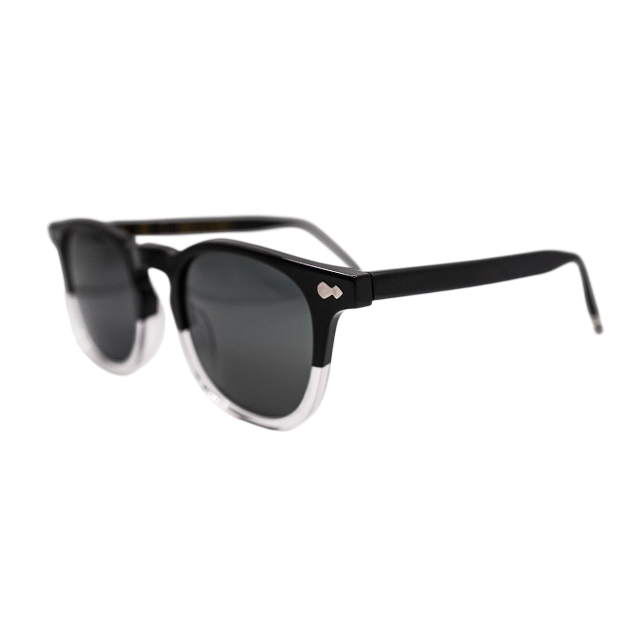 The Emerson, a unisex style handcrafted from Italian acetate, showcases a distinctive design with a black upper-half and a transparent lower-half. Its sleek smoke-colored lens perfectly embodies a relaxed and fun-loving mindset. With all the essential elements, this style effortlessly captures the essence of a carefree summer look.