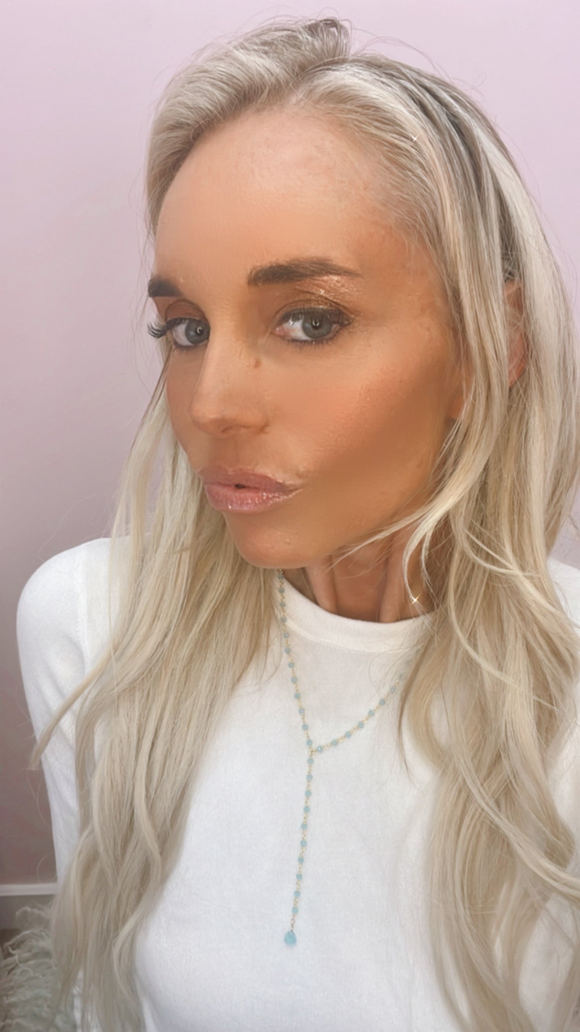 A dainty necklace with a heart shaped chalcedony stone drop with gold chalcedony chain in 14k gold filled wire. Complete with a magnet clasp closure.