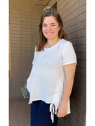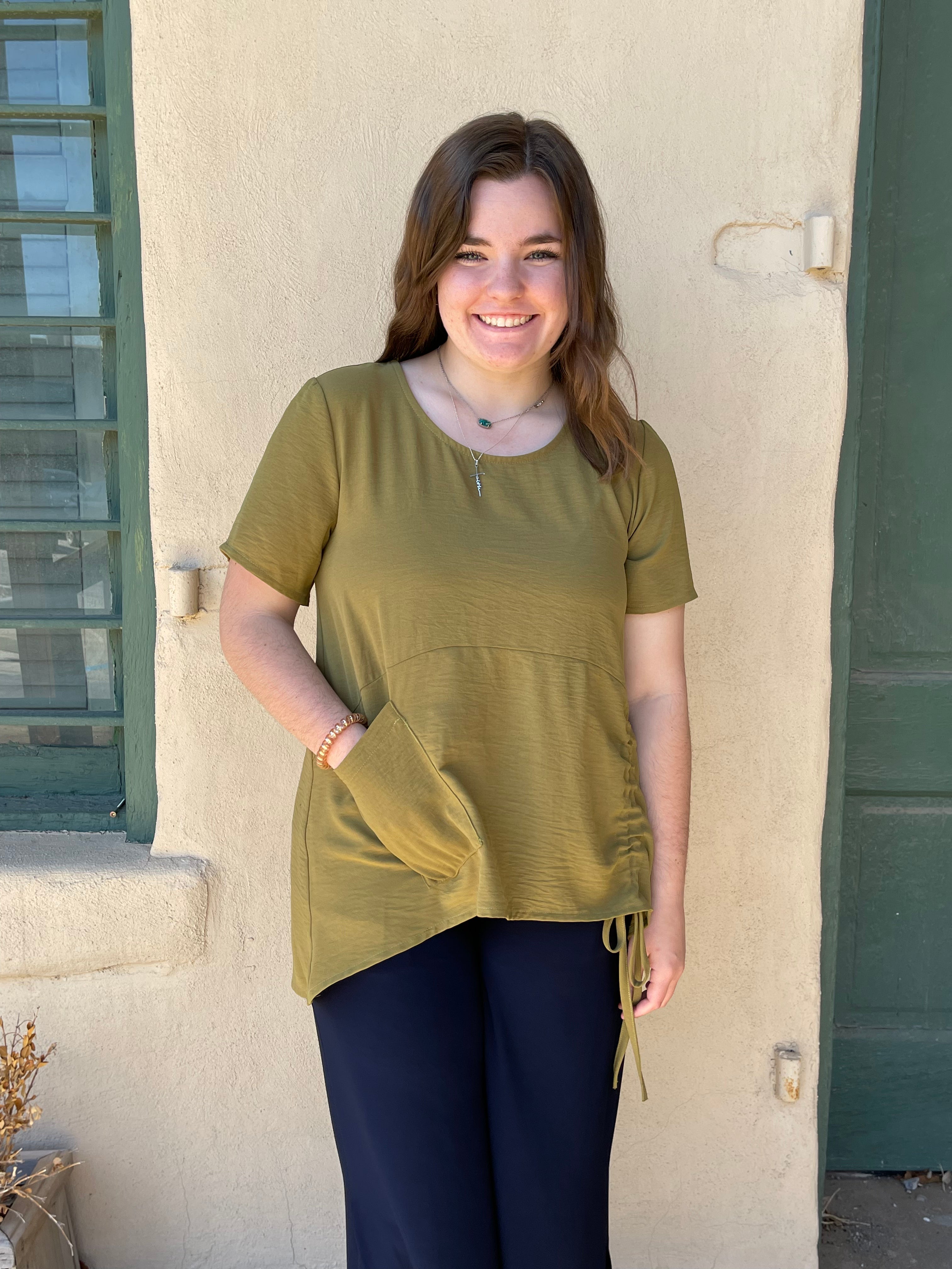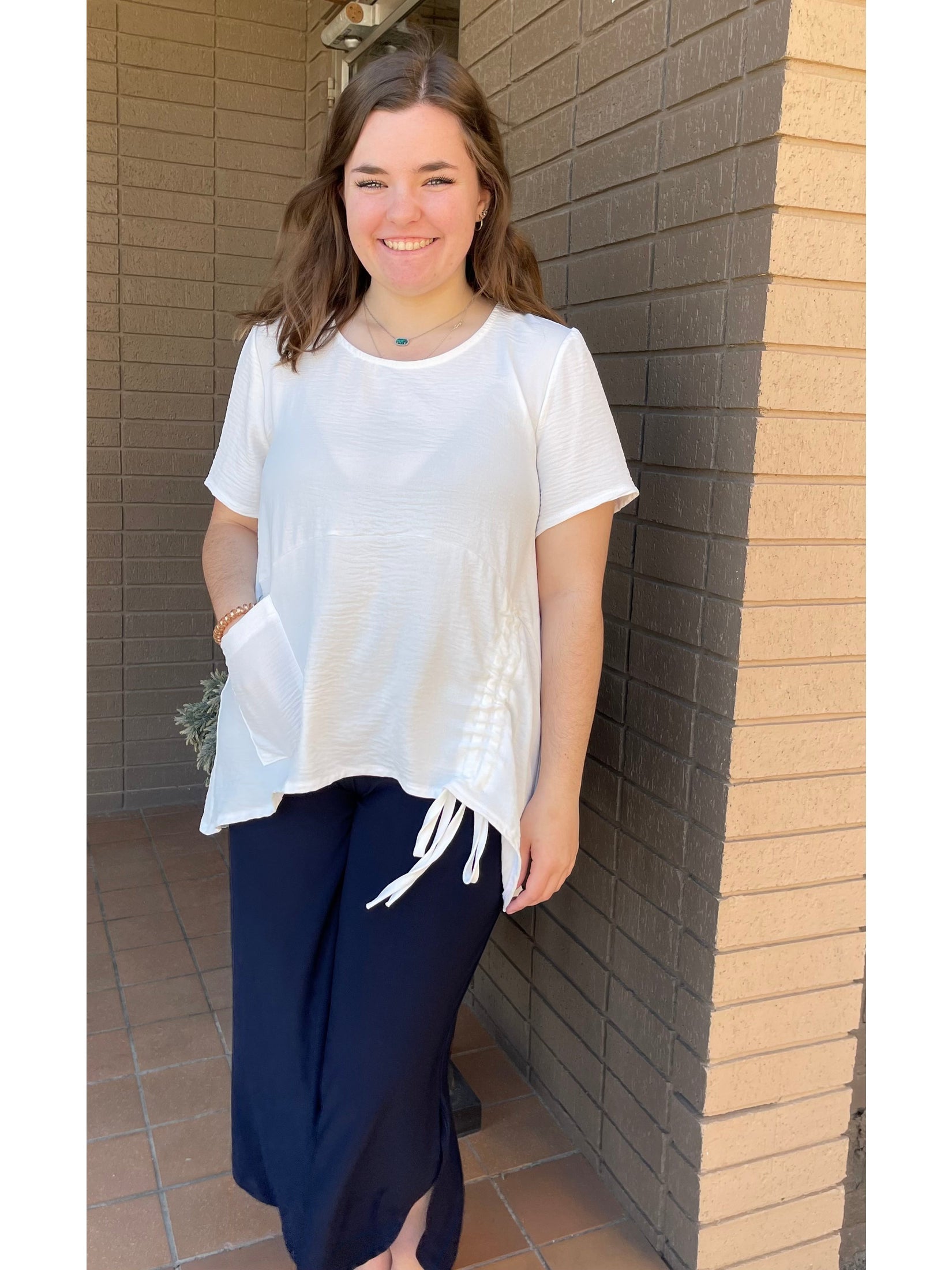 Say hello to your new go-to special occasion top! The lightweight and flowy Emory Melrose Top by Artex Fashions is perfect for all the spring and summer celebrations - weddings, graduations, and showers. With a unique asymmetrical drawstring pocket detail, you're sure to look stylish and feel comfortable, no matter the occasion!