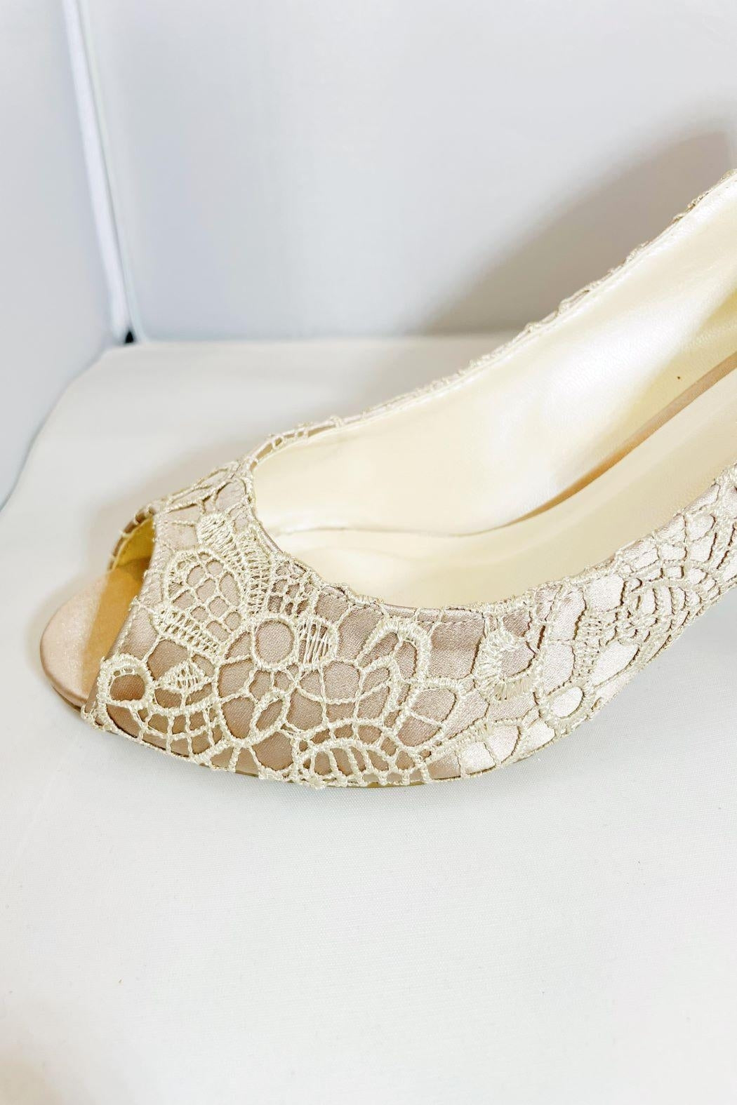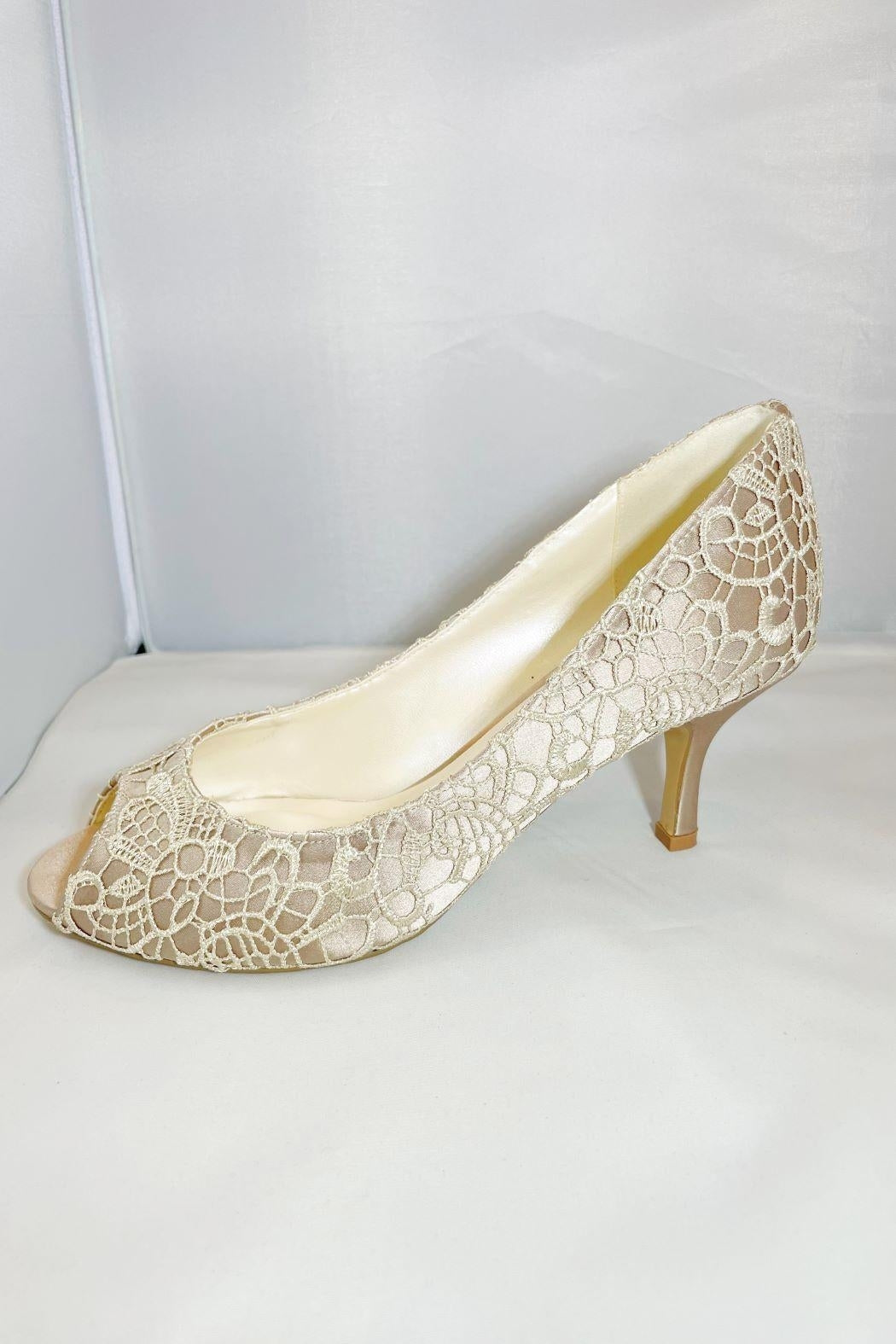 These taupe emotion peep toe shoes are the perfect heel to have. They have a 2.25" heel that is easily worn all day long. They have a lace detail that is all over the shoe.