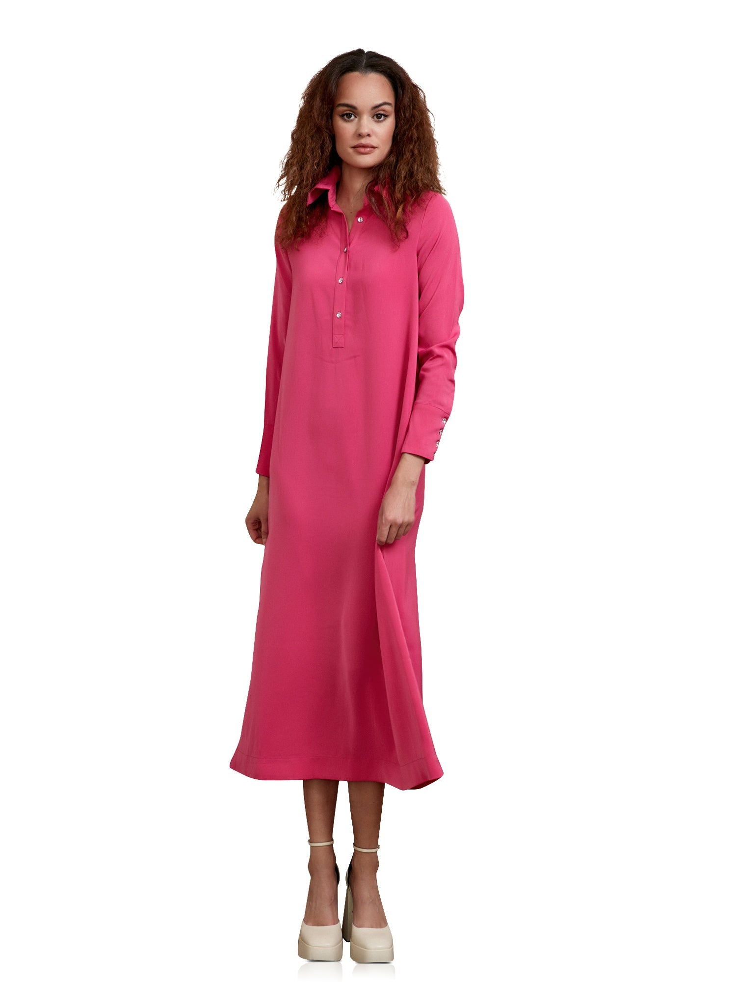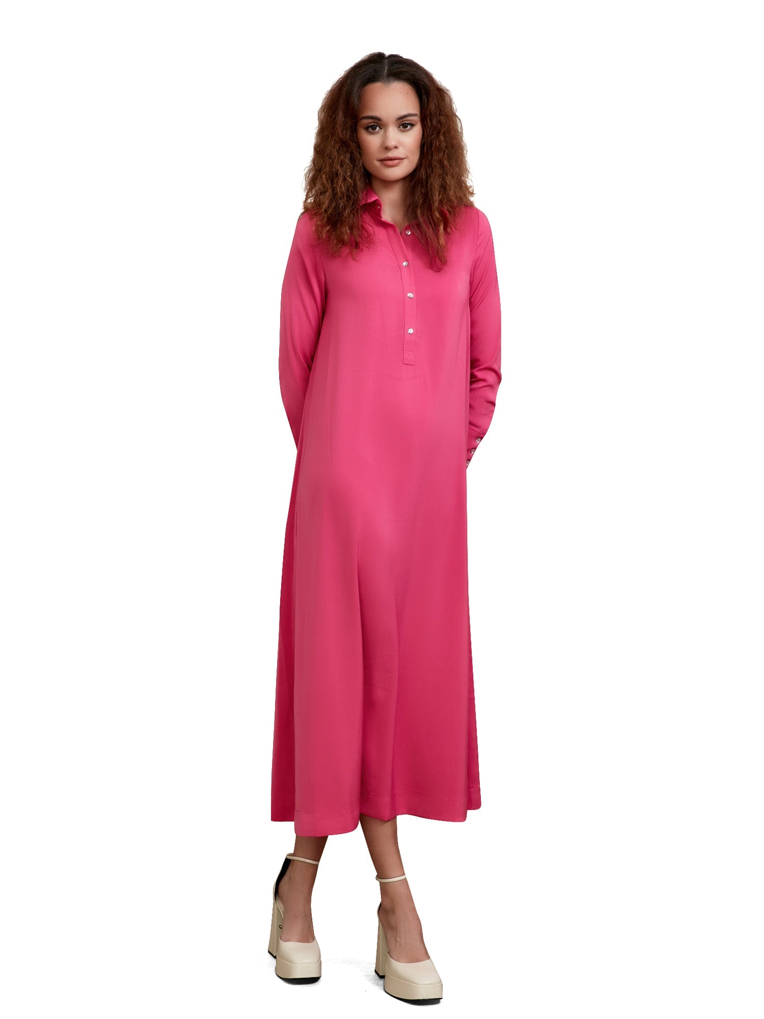 •LOOK: Your day is packed. Morning conferences, business lunch, evening event at school…what to wear? Relax. We have the perfect dress for you. Maxi length in a yummy soft transitional fabric that will keep you comfortable and fresh looking all day. Simple collar with 5 workable buttons. Layer over a cami or colorful tee for a different look. This dress is versatile and stylish. Try different jewelry or accessories to change the dynamic but you will never question why you bought this. Countless options with remarkable results every time.