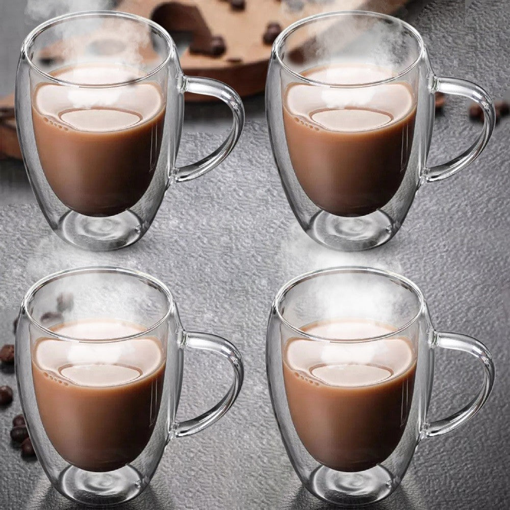 Eravino 4 Pack 12oz Double Wall Glass Mugs