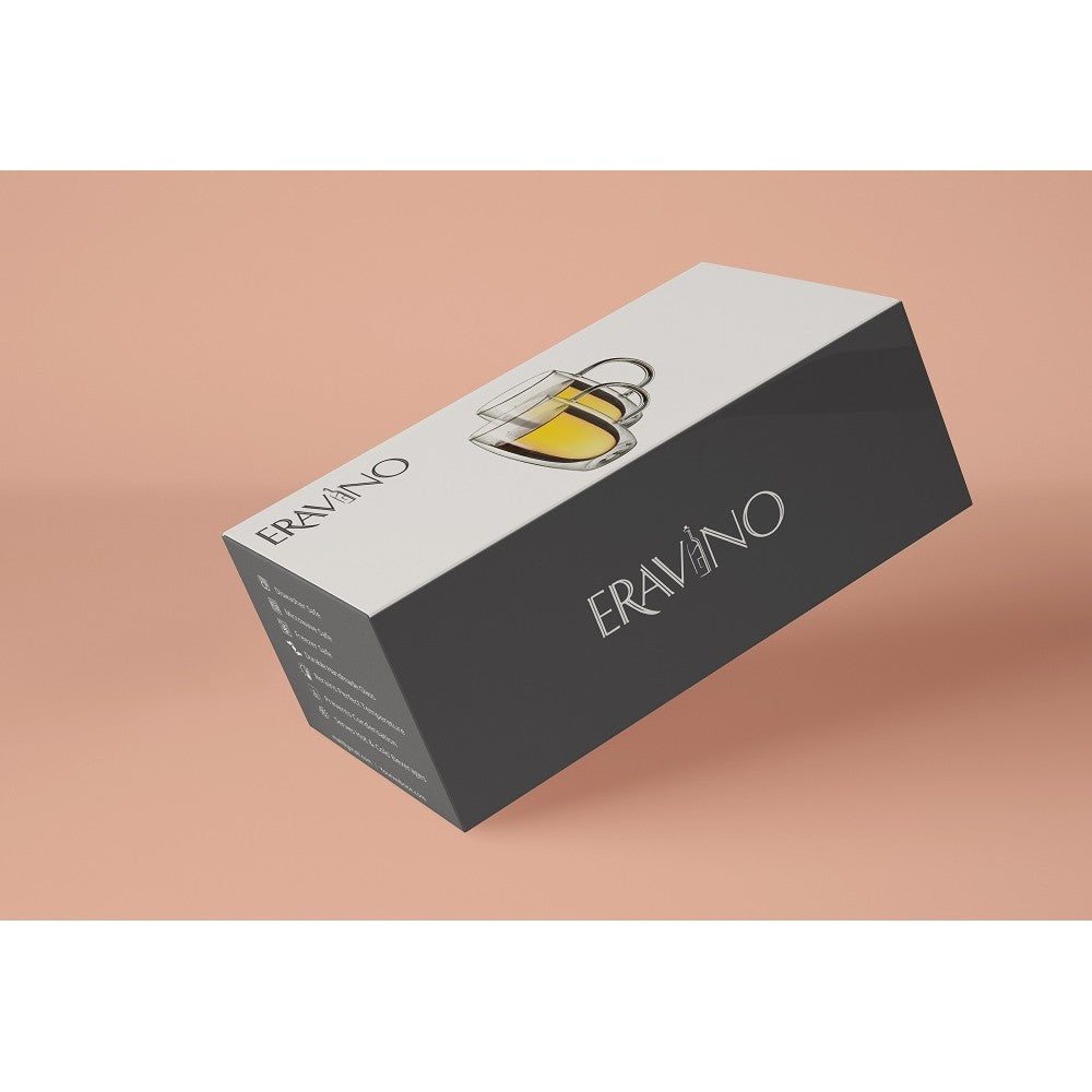 Experience the luxury of Eravino's Double Wall Glass Mugs. Made of the finest glass, these mugs allow you to see the steam of your favorite beverage without burning your hands. Impress your guests with both style and quality. Comes in a 4 pack of 12oz mugs.