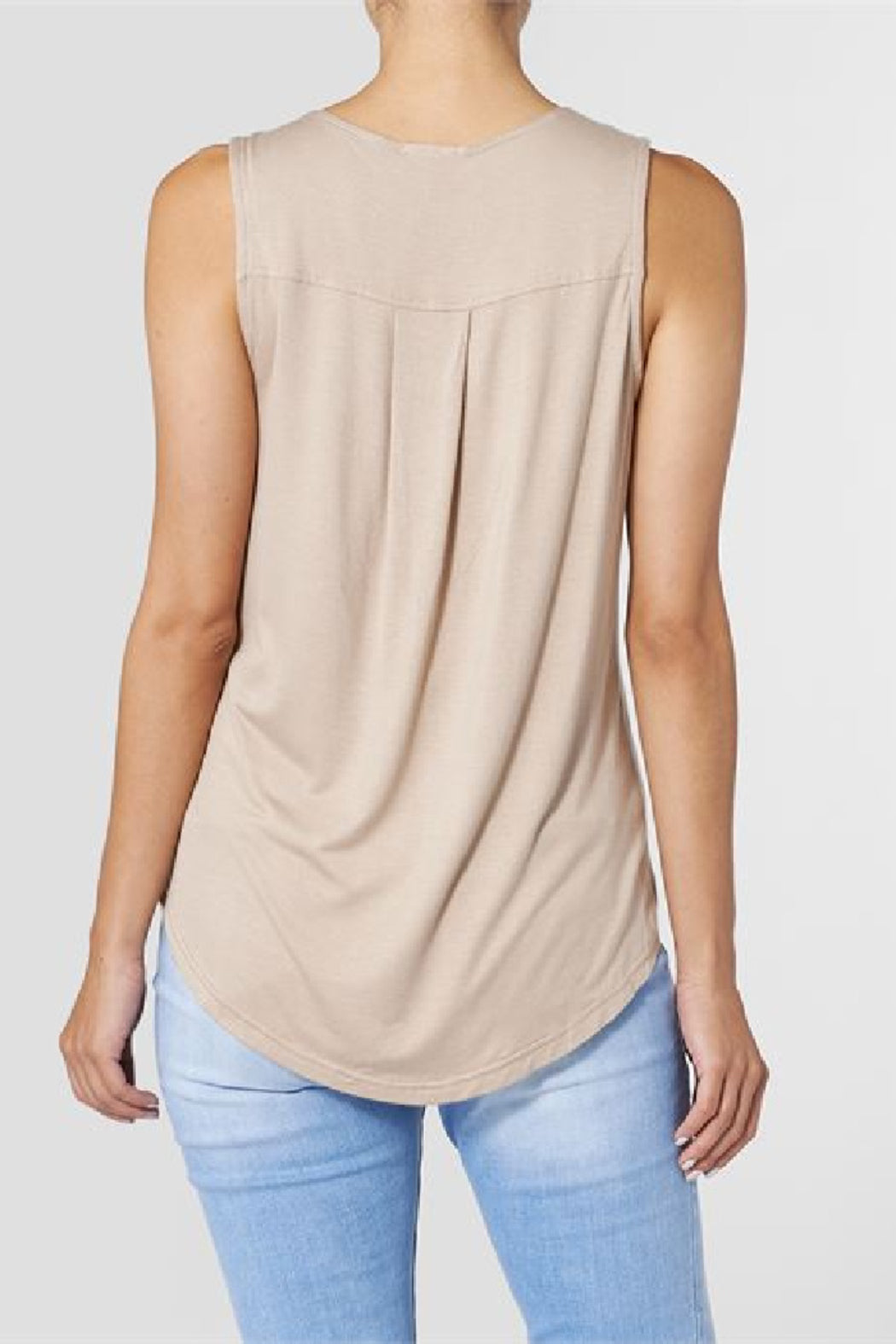 Curved hem and back pleat detail, brings ease and elegance to our sleeveless Erin Pleat Tank. Make a chic statement if worn separately or layer under your favorite jacket, cardigan, kimono or ruana. See pictures for size chart.