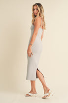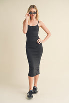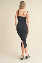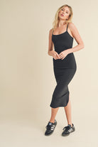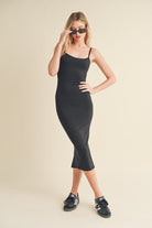 Expertly crafted with butter-soft fabric, this formfitting midi dress features a flattering scope neck and adjustable straps for the perfect fit. Complete with a zipper closure and center back slit, it's perfect for any occasion. Look and feel your best in the Essential Basic Midi Dress.