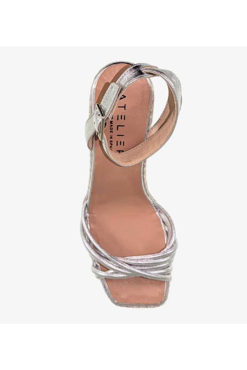 Leather upper. Square toe. Leather lining. Buckle closure. Leather insole. Rope covered heel, 75 mm (3.5''). Rubber outsole. Made in Spain