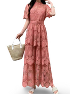 Description - Embrace timeless allure with the Eterna Lace Round Neck Short Sleeve Bodycon Dress. This figure-flattering dress features delicate lace detailing and a chic round neck. The short sleeves offer a touch of coverage, while the bodycon silhouette accentuates your curves. Made with (%100 Rayon) for a touch of luxury, this dress is perfect for a night out or a special occasion.