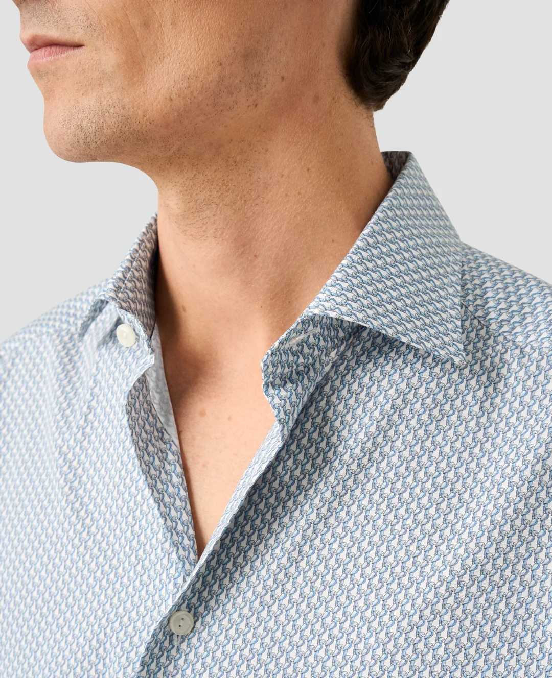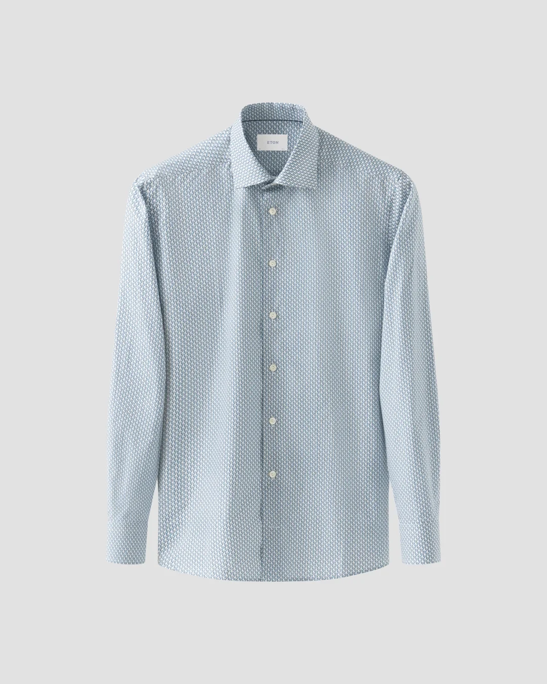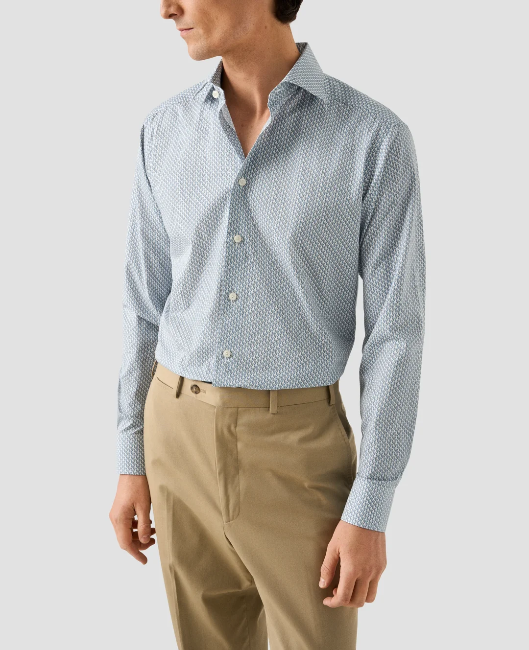Add a playful touch to any occasion with our Eton Parrot Print Signature Twill Shirt. Made from 100% wrinkle-resistant cotton, the micro pattern features 3D parrots for a unique look. Comfortable and stylish, this shirt will elevate your outfit. Includes white buttons for a polished finish.