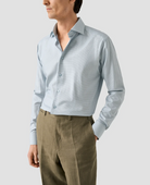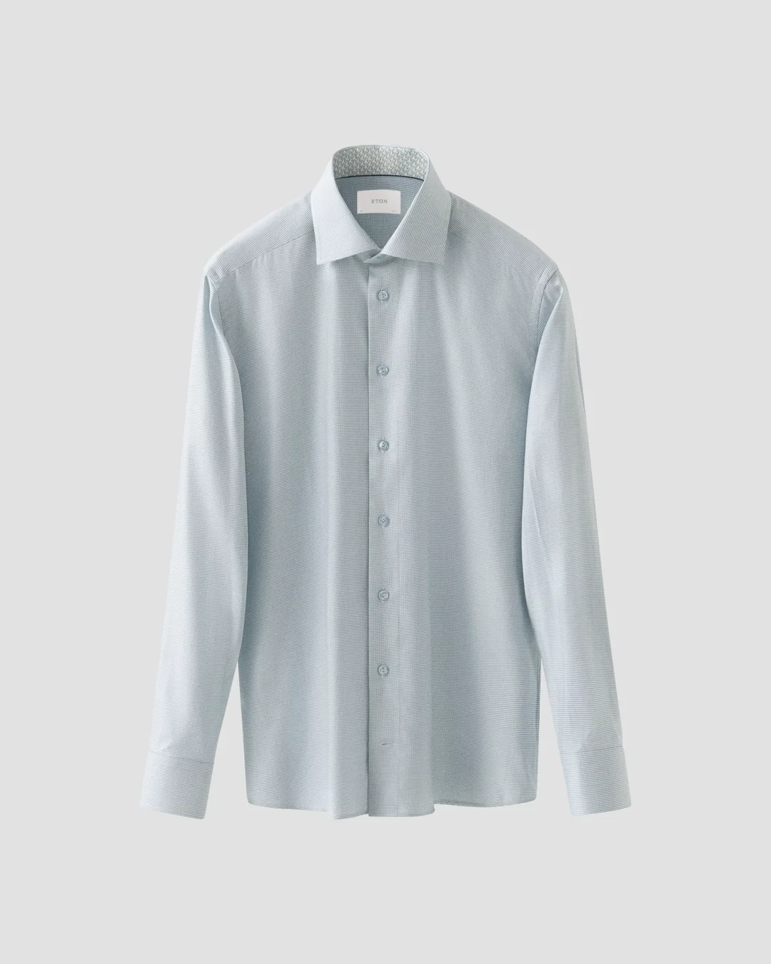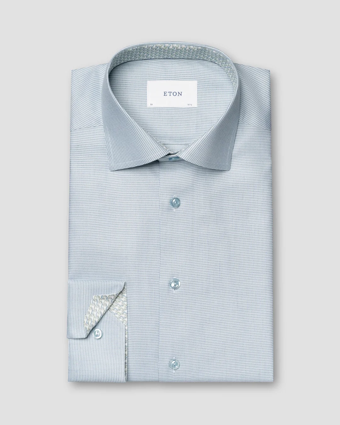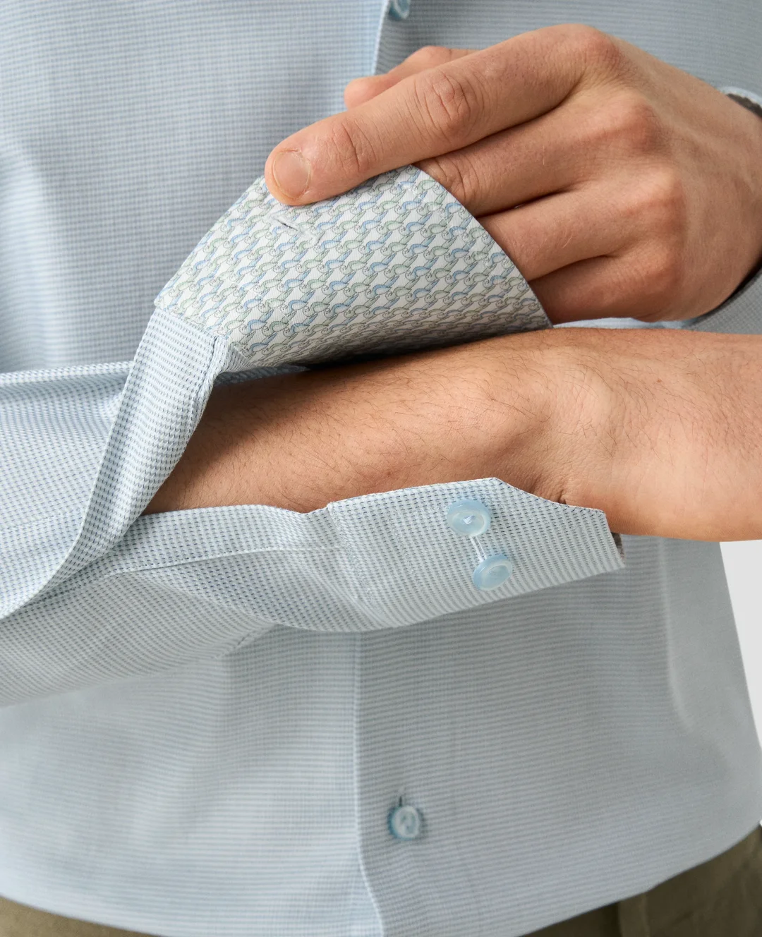 Add a playful and professional touch to your business wear with the Eton Semi Solid Effect Dobby Shirt. Made from Eton's Signature Dobby, this shirt has a rich texture and elegant luster. Its crease-resistant finish ensures a polished look all day long, while playful details in the collar and cuffs add a unique touch. Complete with a charming parrot print on the inside.