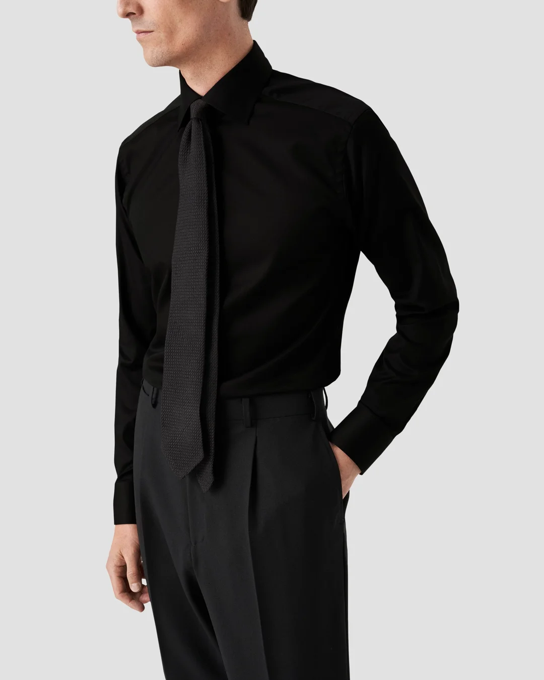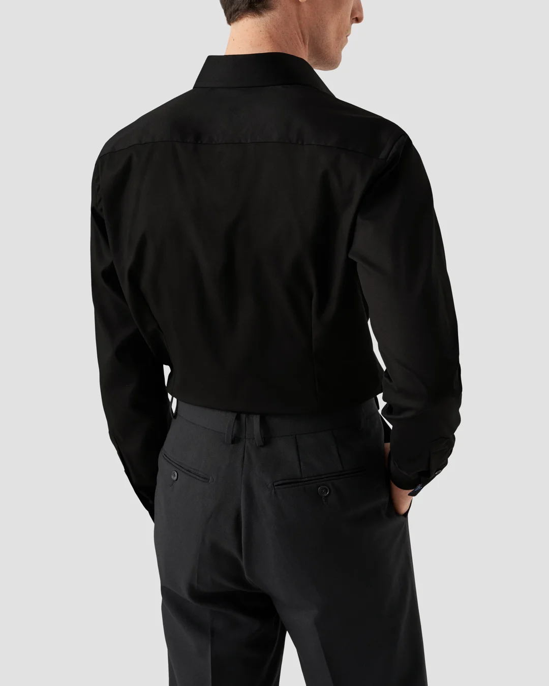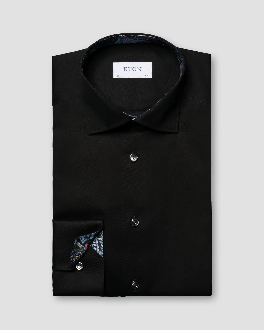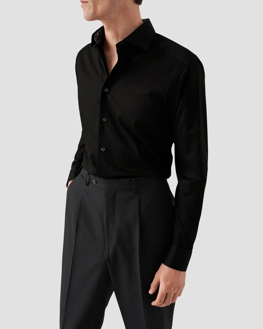 Take your outfit to the next level with Eton's Signature Twill Slim-Fit Shirt featuring a playful micro geometric print inside the collar and cuffs, light blue buttons, and a contemporary cut away collar. Look effortlessly stylish with the added benefits of soft touch, luster, and wrinkle-free fabric.
