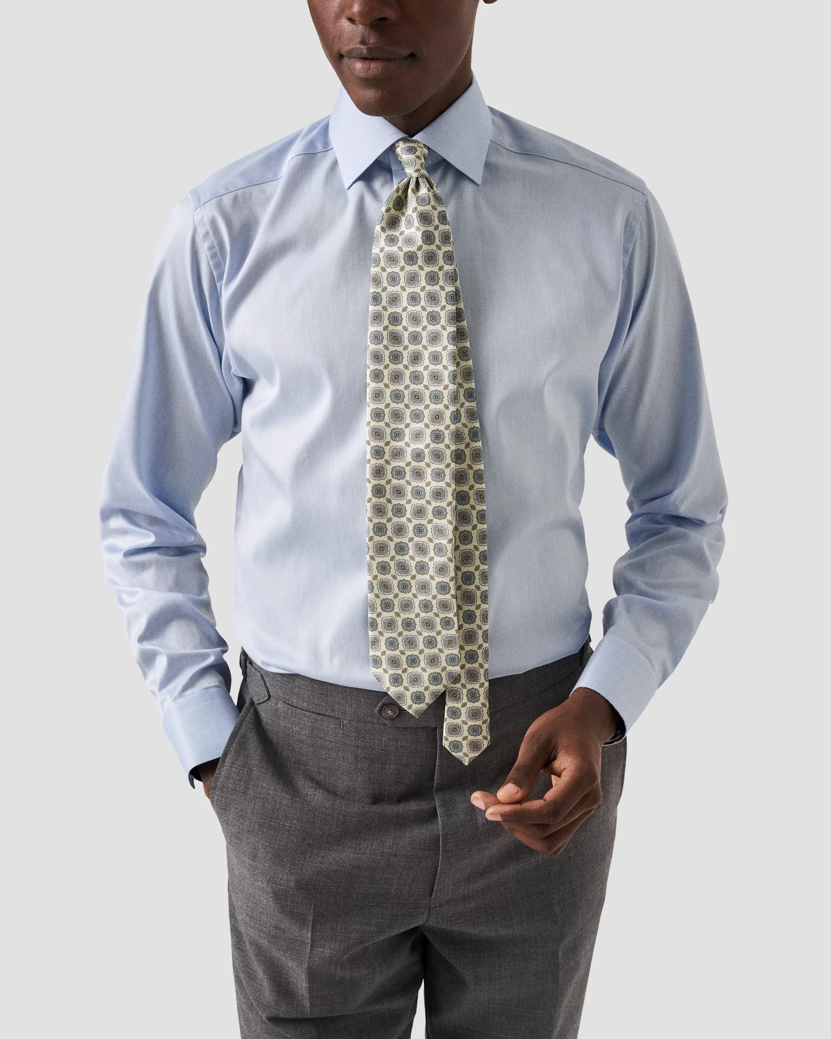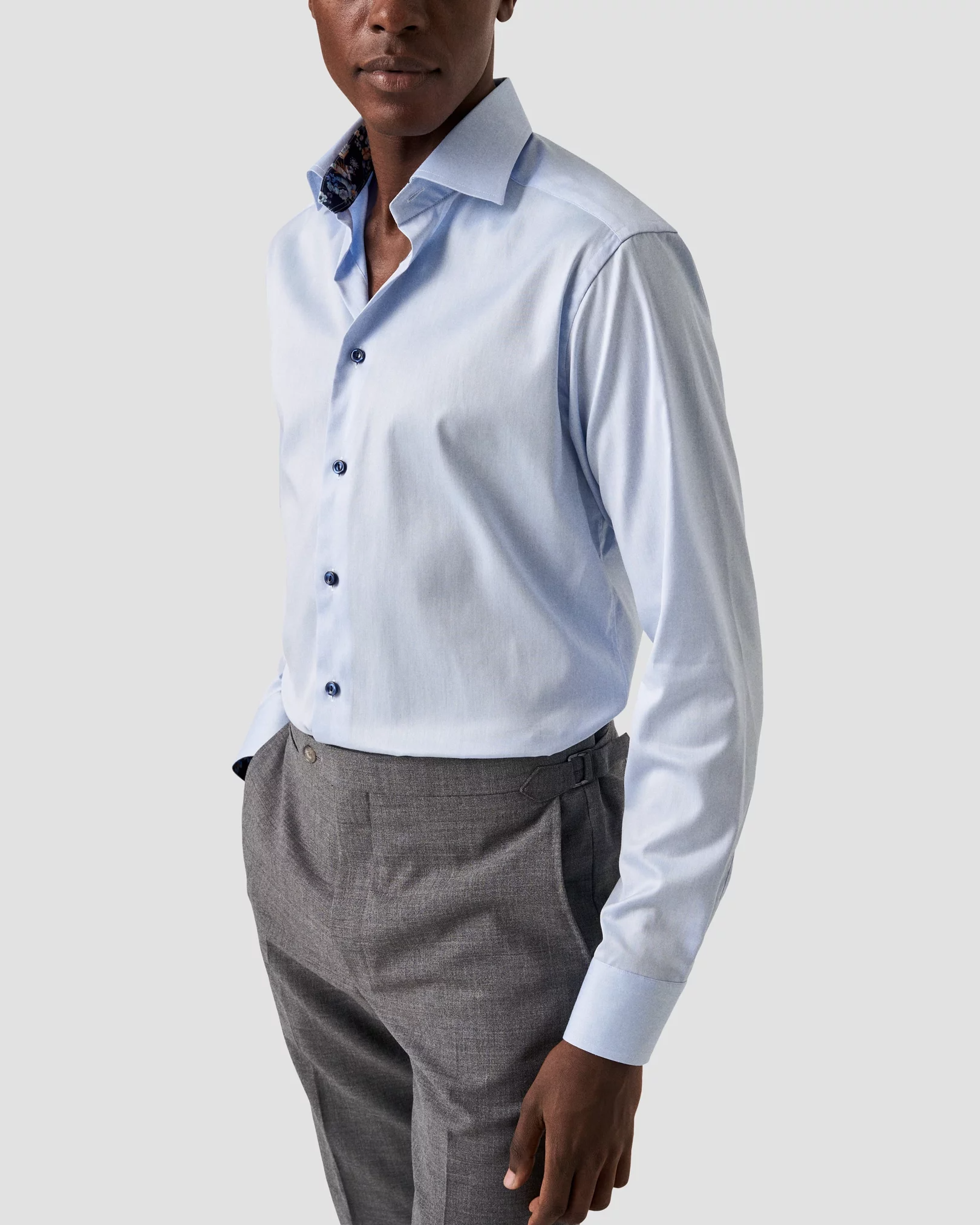 Upgrade your dress shirt game with the Eton Slim Fit Dress Shirt. Made with 100% organic cotton and featuring our popular Signature Twill fabric, this shirt offers fine texture, added comfort, and outstanding crease resistance. Its timeless style is elevated with a navy floral pattern inside the collar and cuffs and sharp navy buttons.