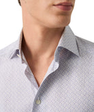 Introducing the Eton Slim-Fit Geometric Shirt, inspired by the iconic mosaic tiles of Barcelona. Made from our Signature Twill fabric, this shirt offers wrinkle-free performance, a trendy geometric print, and ultimate comfort. Perfect for adding a touch of pattern to your professional wardrobe.