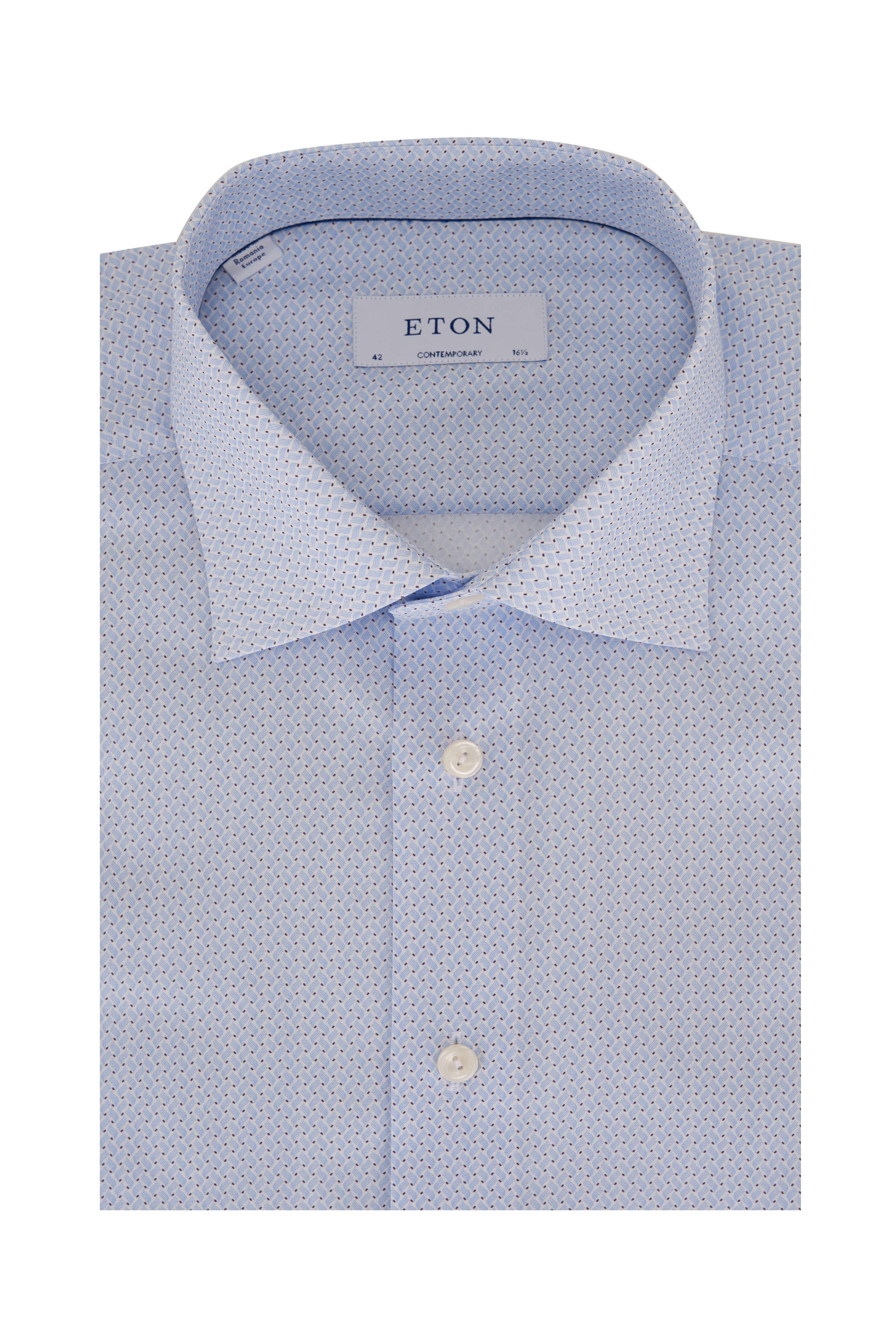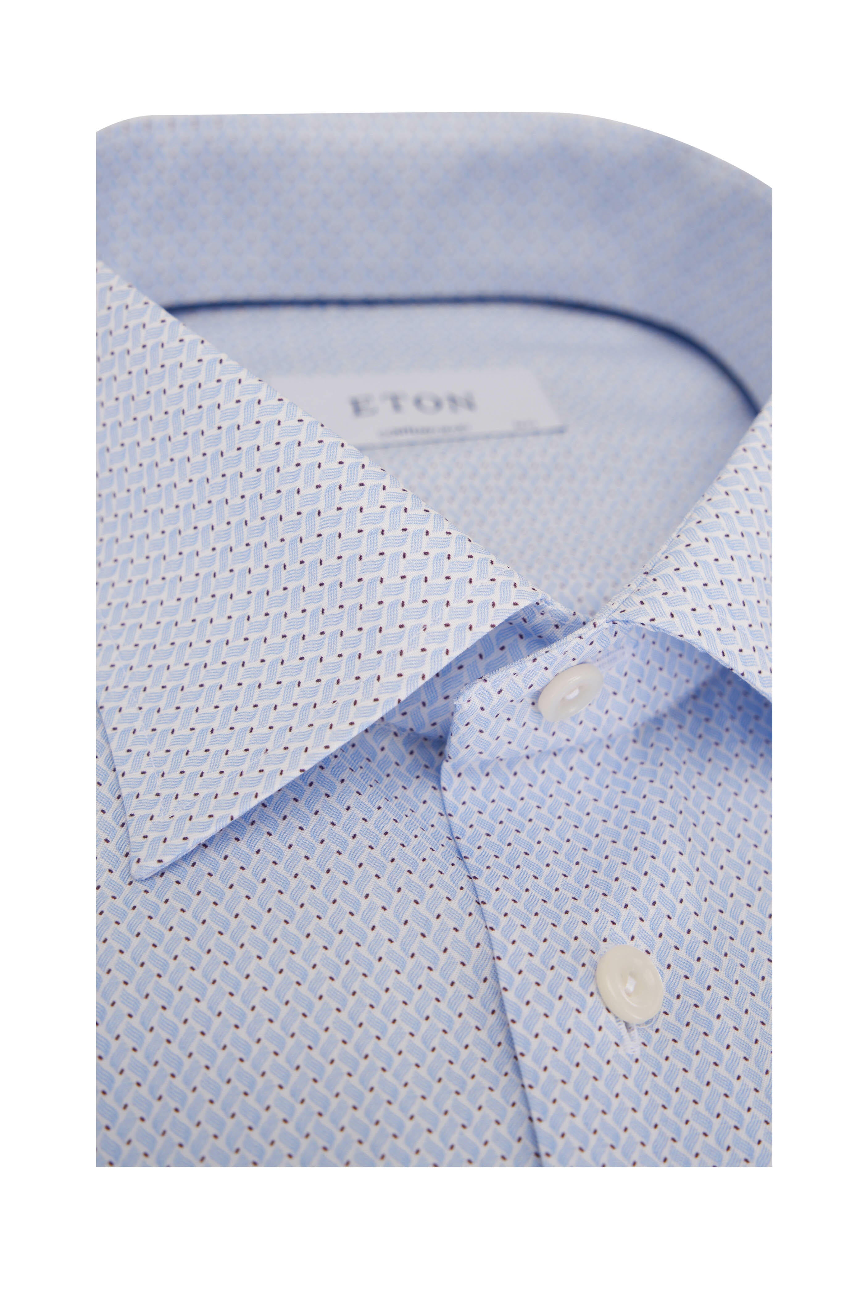 Eton Slim Fit Light Blue Dress Shirt with Geometric Print
