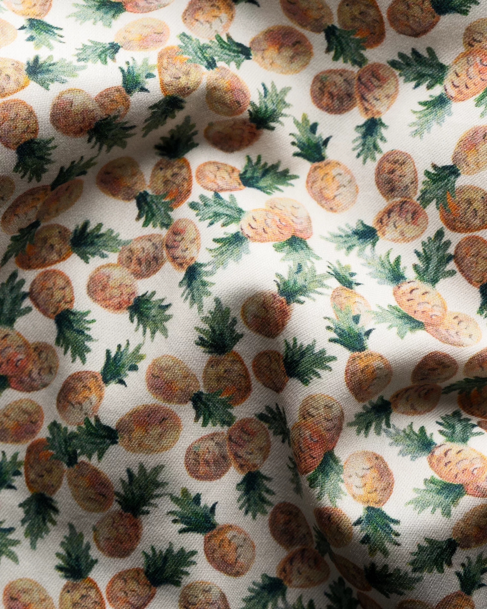 Indulge in Eton Slim Fit Playful Dress Shirt featuring a hand-painted pineapple pattern crafted from our luxurious Cotton & TENCEL™ Lyocell fabric. The silky softness and elegant cut-away collar elevate this staple, making it perfect for those who appreciate the finer things in life.
